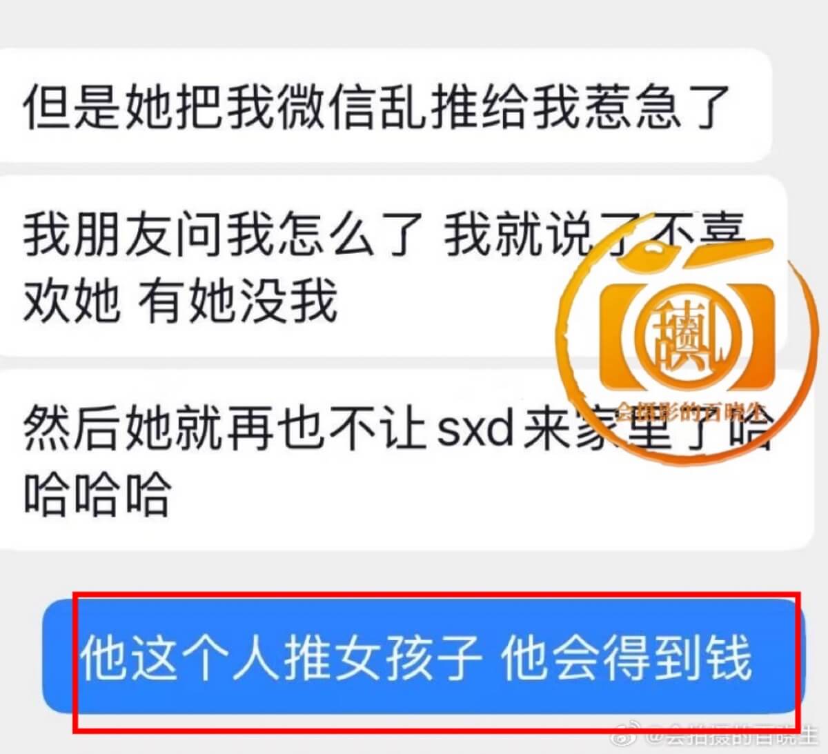 還有疑似其閨蜜爆料,司曉迪經常把自己微信亂推給其他人,另一人則回應:他可以得到錢~