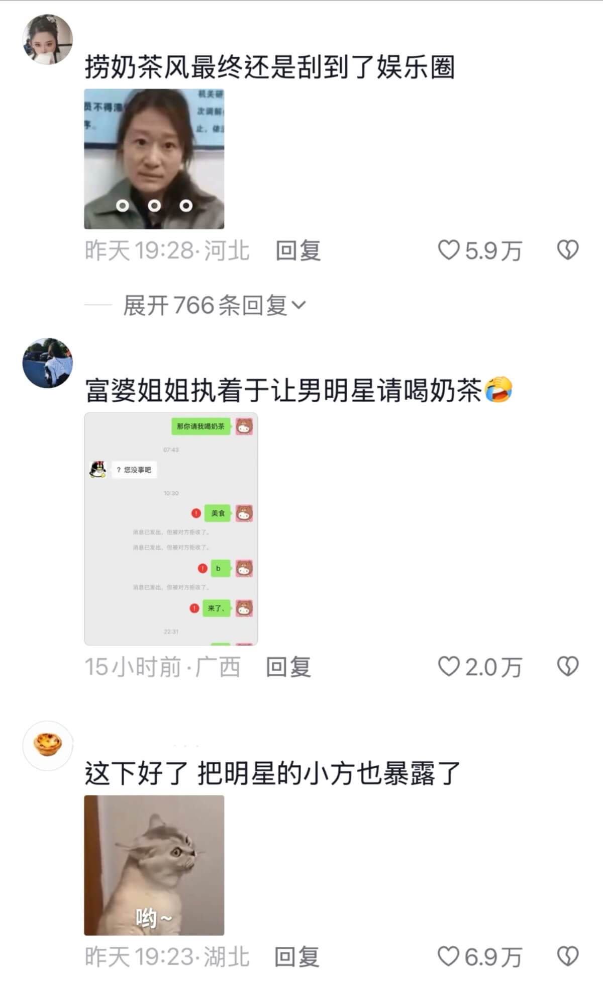 但網友總整理了一下,這些未標明聊天對象的記錄顯示,司曉迪都讓對方請客奶茶之類的,這麼多聊天記錄整理下來,金額也只有幾千塊,狗仔反而被網友吐槽👇
