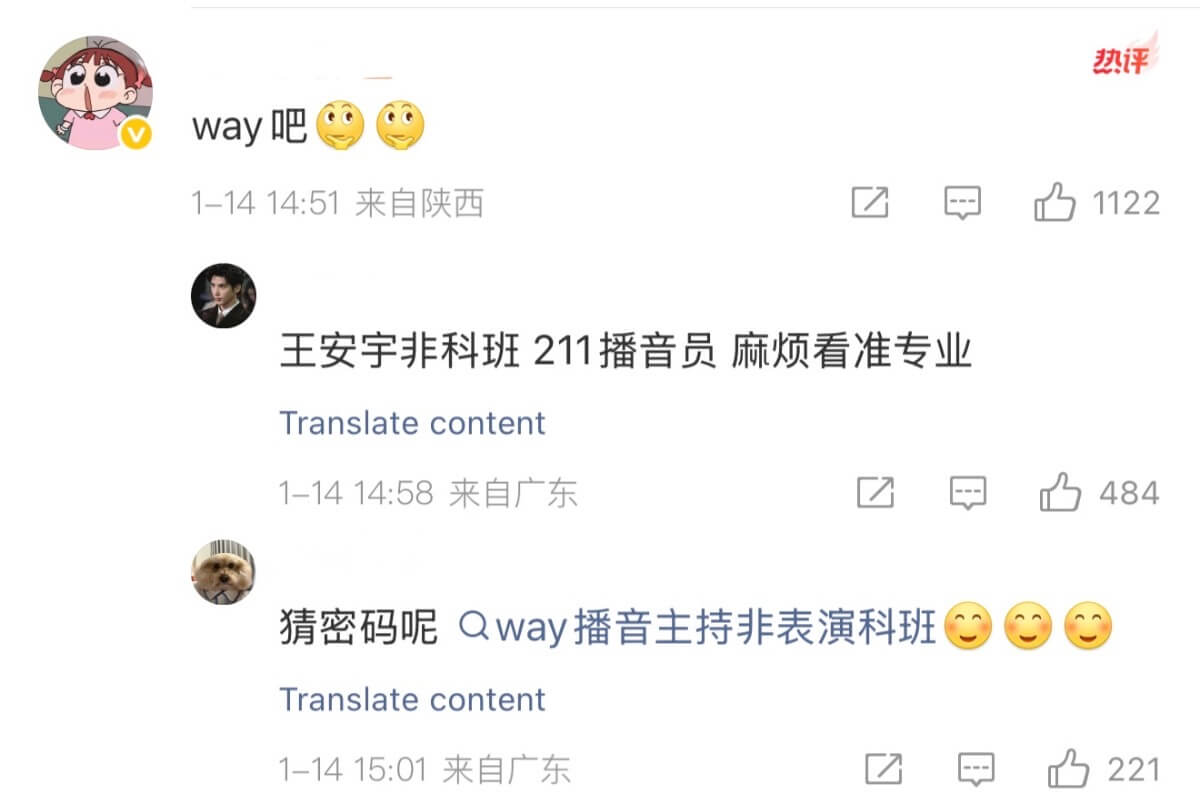 粉絲闢謠表示王安宇並非爆料中的科班出身,但網友反懟王安宇修讀的「播音主持」也算科班👇