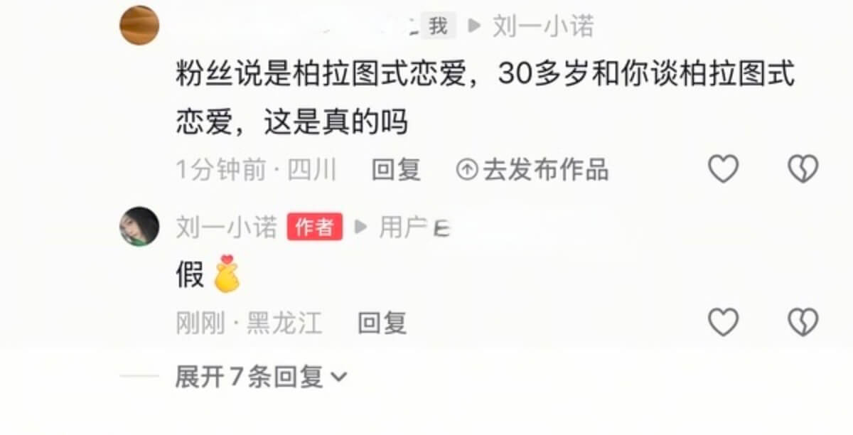對於粉絲不斷說檀健次和她只是柏拉圖式戀愛,劉一諾再次打假👇