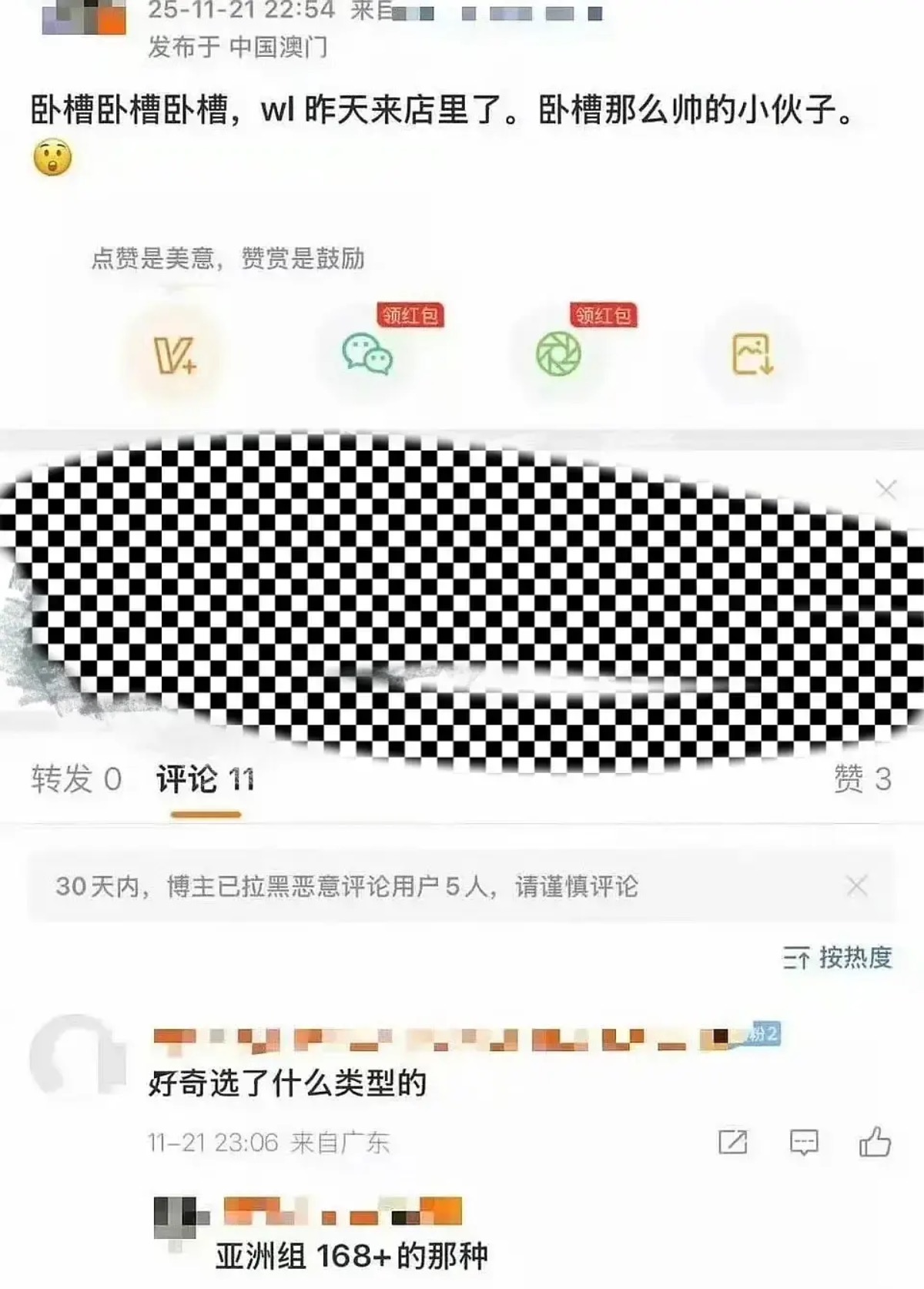 網友發現在去年11月21號,曾有網友發文暗示吳磊在澳門去了「聲色場所」,還疑似叫了特別服務👇