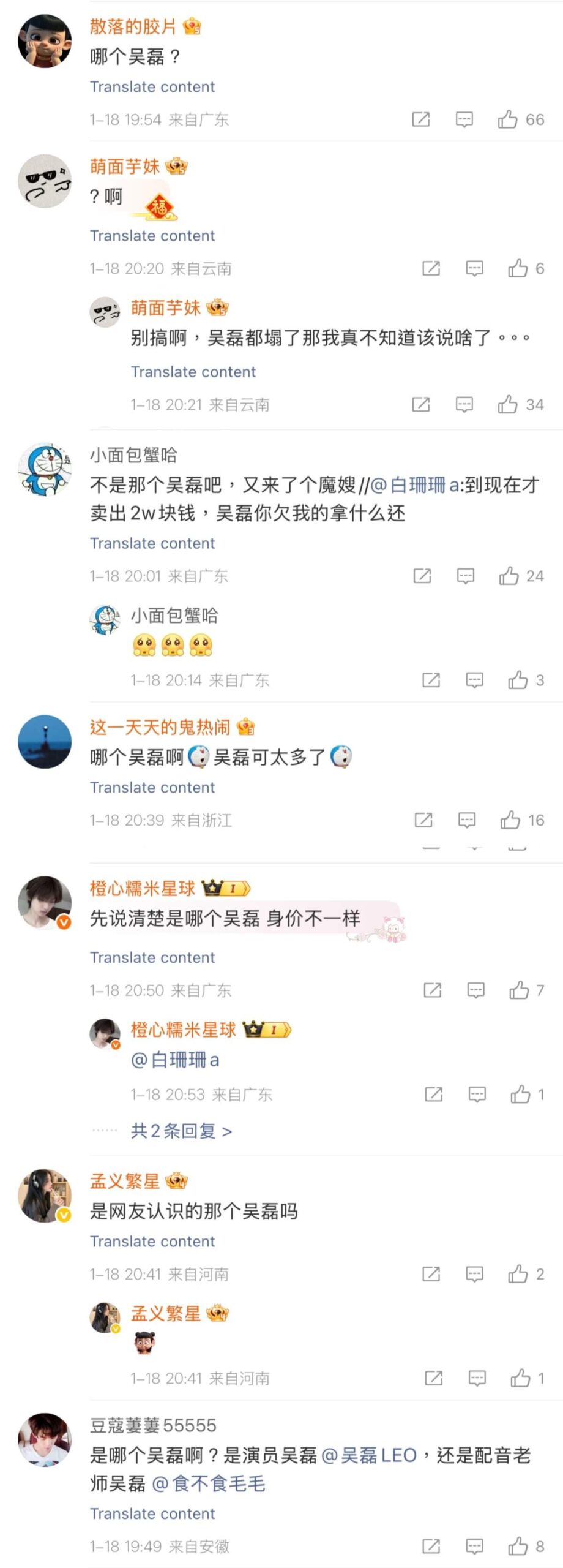 這裡科普一下,內娛除了我們熟悉的「三石弟弟」叫吳磊,還有另一個配音員也叫吳磊!由於這位白珊珊並沒有艾特任何賬號,評論區都在追問到底是哪一個吳磊👇