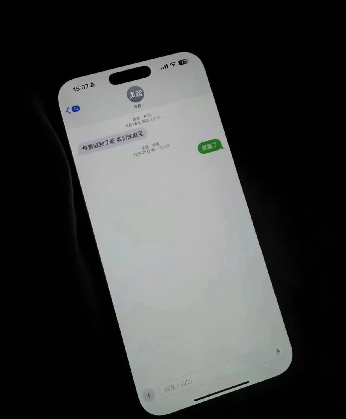 原來這位私生之前還收到了靈超的簡訊,表示「我們法庭見」。在得知判決之後,私生回復他:「我贏了。」