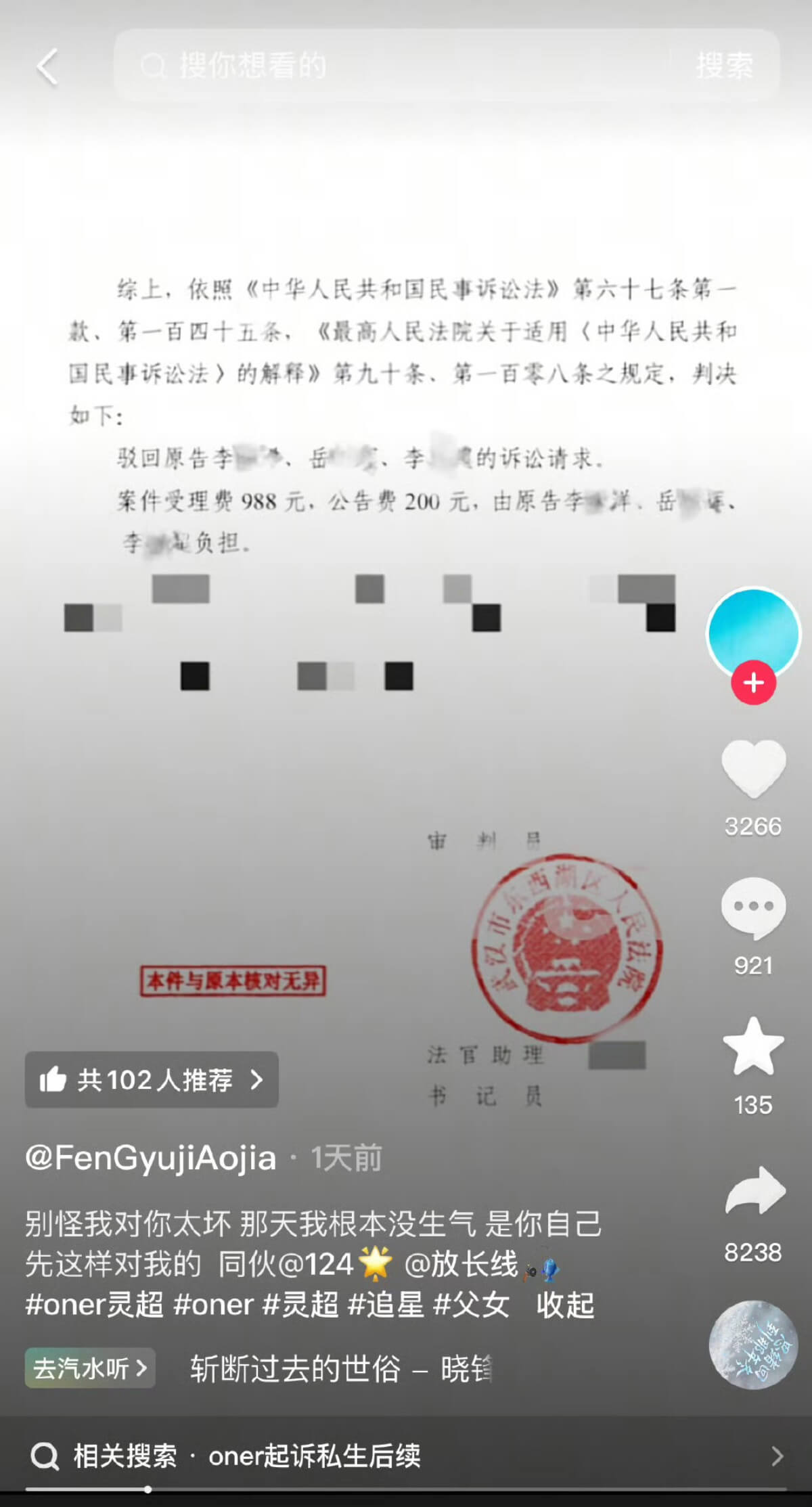 居然敗訴了?是噠,如果有關注內娛的話,應該對「私生」課題不陌生,之前ONER成員之一的靈超,就因為在機場和地下車庫和私生起爭執,直接爆了熱搜👇