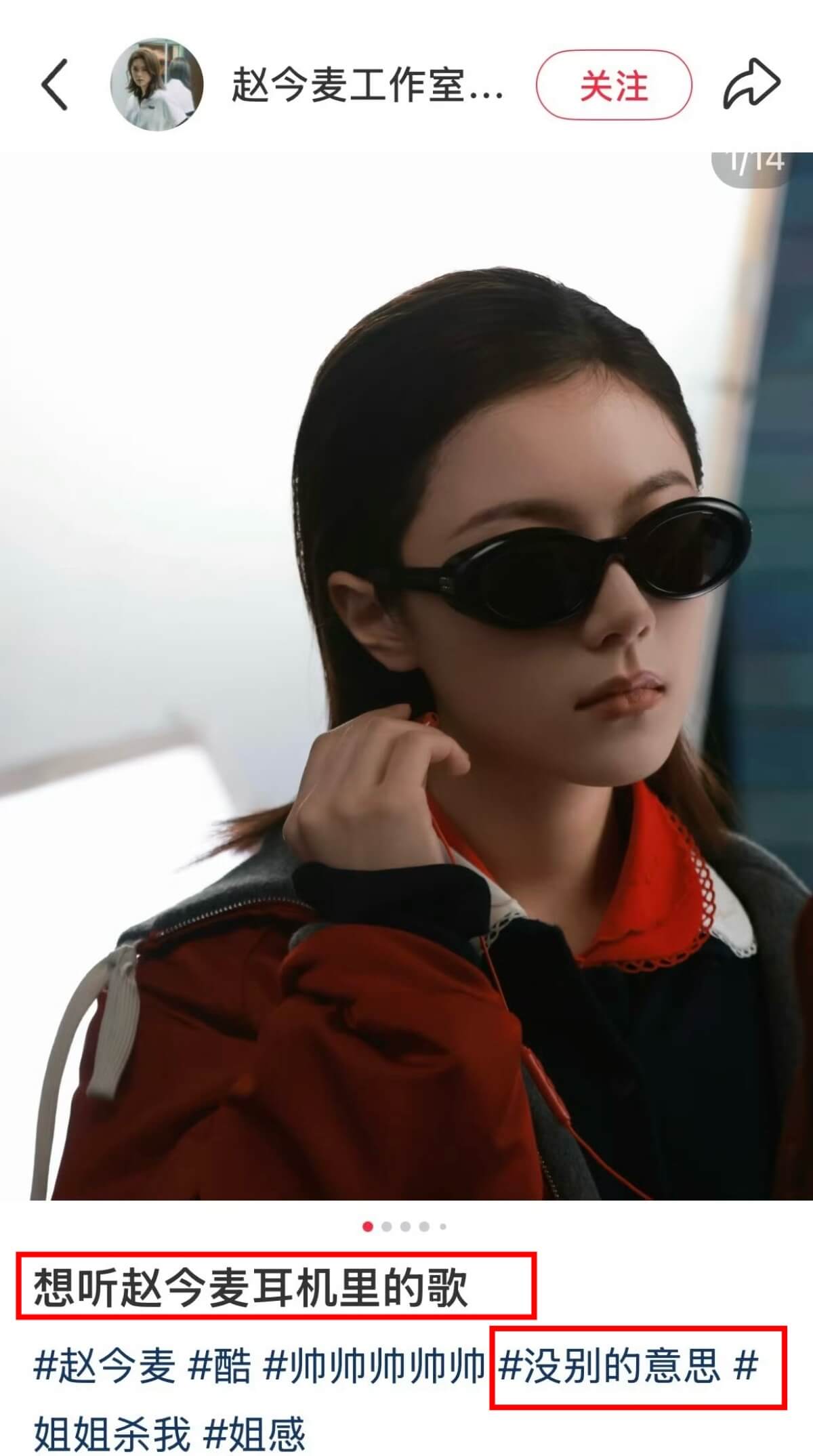 在引起熱議之後,網友發現趙今麥工作室火速編輯了文案,而且帶了「沒別的意思」的tag👇