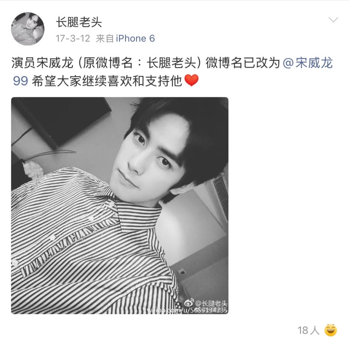 但事實上,宋威龍之前使用的微博號是出道前的「長腿老頭」,在出道之後,這個微博號已經正式被停用,至今沒有更新👇