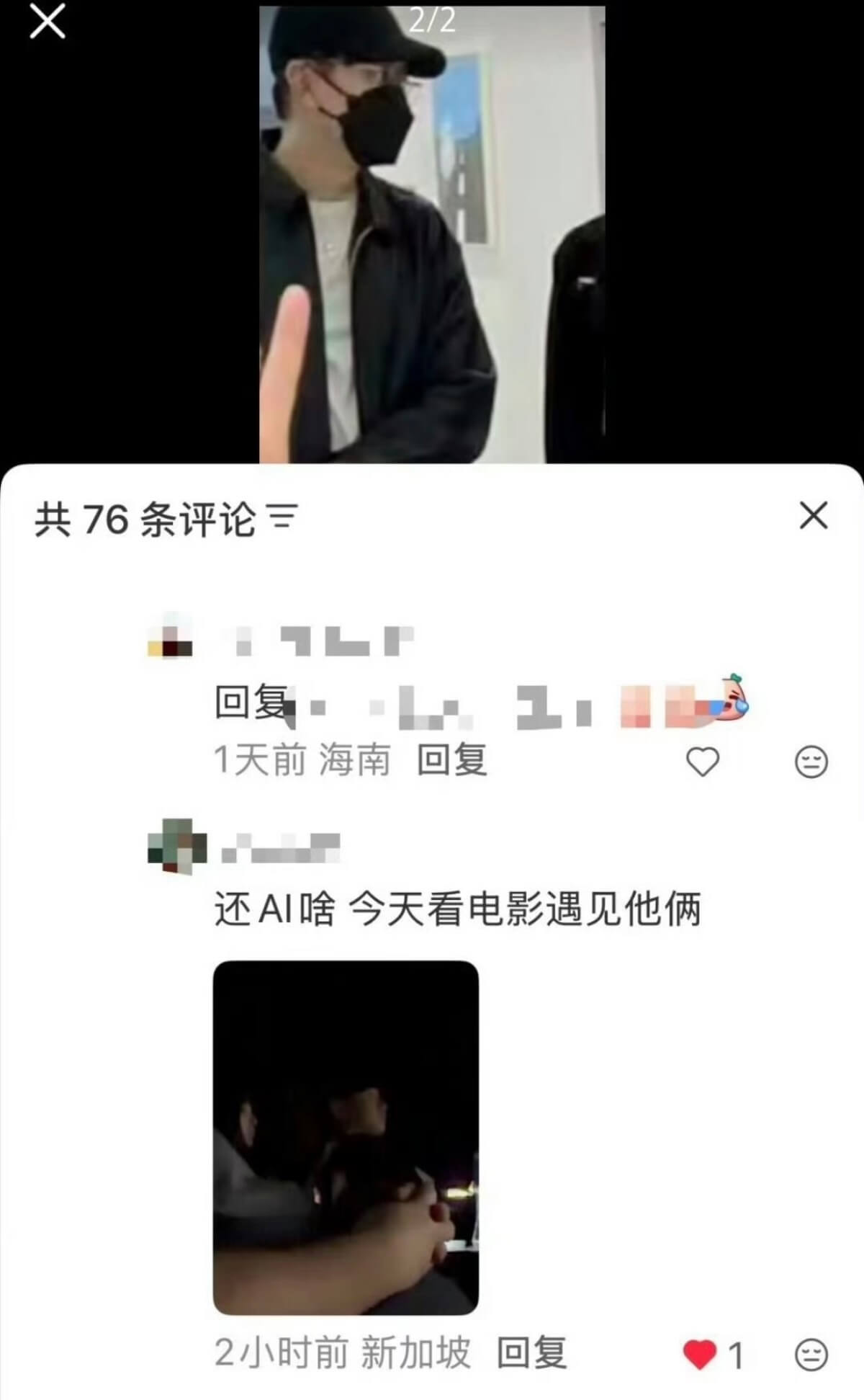 就有網友質疑這看起來像是ai後製,結果被另一名網友回復自己在新加坡看電影,真的遇到兩人👇