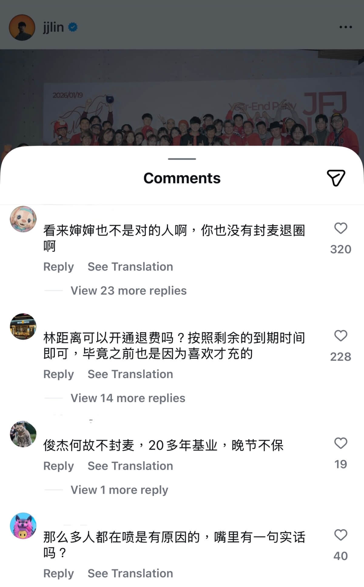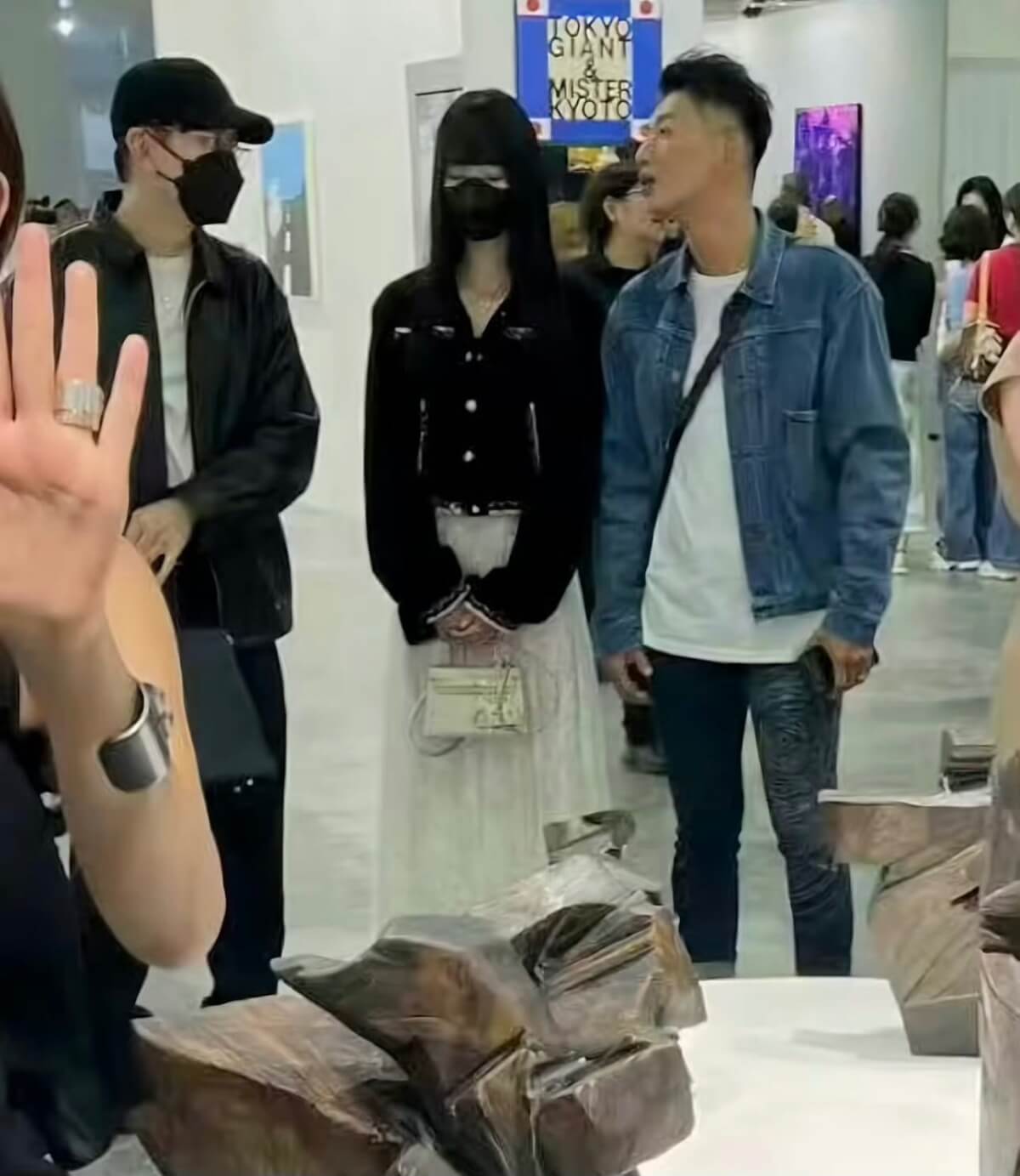 而在官宣之後,林俊傑被爆捂嘴自己粉絲,在粉絲app中禁言粉絲,而且還大量刪評!就在網絡腥風血雨的時候,有網友發了在新加坡藝術展偶遇JJ和七七的同框照!只見兩人戴著同款口罩被拍👇