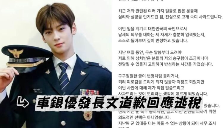 車銀優長文中向這次事件受到影響的人道歉,否認爲了迴避逃稅爭議刻意選擇服兵役時間,表示將誠實、認真地配合後續所有與稅務相關的程序,並根據相關機構作出的最終判斷,謙虛接受結果,切實承擔相應的責任。