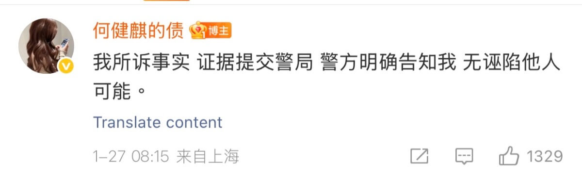 沒想到的是,事情還沒結束!在何健麒曬出報警回條之後,前女友再發文表示自己也去了警局報警,警方當場認定她沒有誹謗!