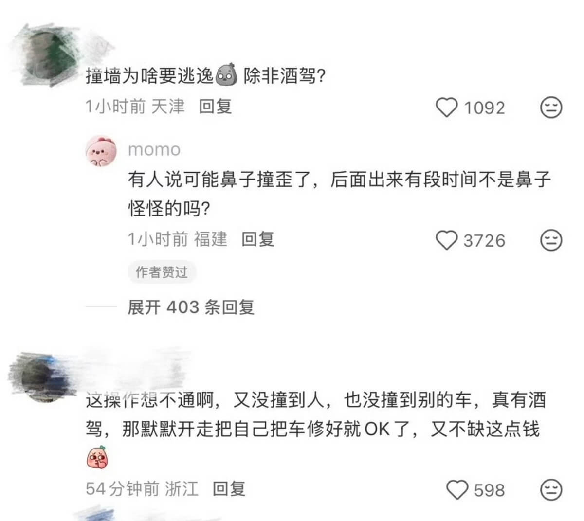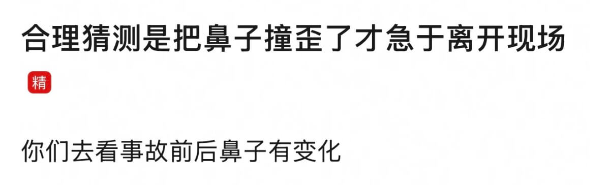 究竟為了什麼會選擇肇事逃逸,畢竟只是撞上了一面墻,並沒有人員受傷!當時就有網友在猜測,會不會是因為傷到了鼻子,所以急著去修復?