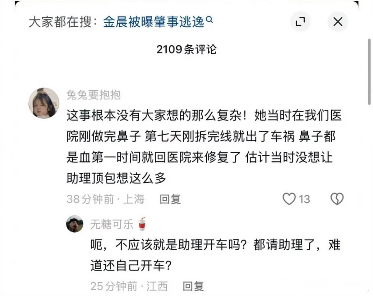 是噠,金晨在29號被曝出疑似涉及交通事故之後肇事逃逸,由助理安排頂罪,直接爆了好幾個熱搜!