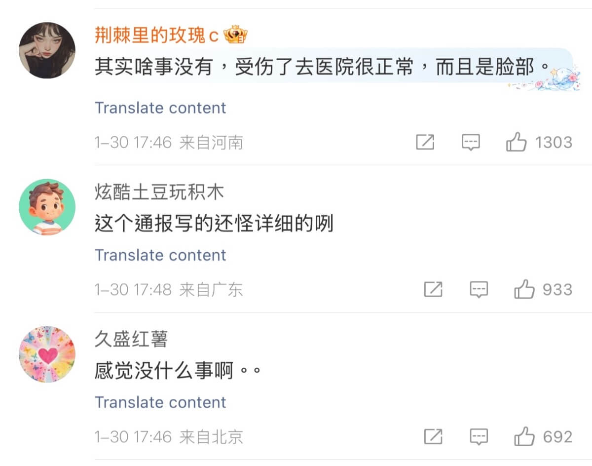 沒想到這樣的說法居然是真的?是噠,警方在30號晚間發了通報,交代了金晨這件事的來龍去脈,主要說法就是因為臉部受傷被迫離開現場,留下了助理協助,結果沒想到助理謊稱自己是司機。