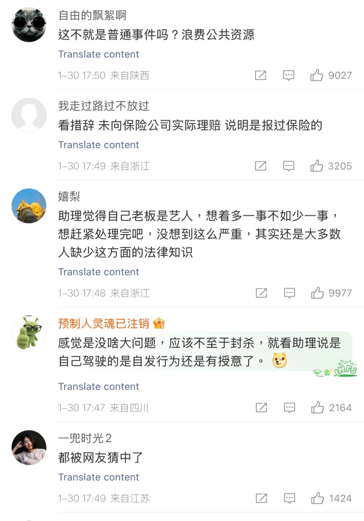 另外,網傳金晨試圖騙保,保險公司在調查期間才發現司機是金晨。而在警方通報中,提到了金晨並沒有試圖向保險公司索賠。警方通報如下👇
