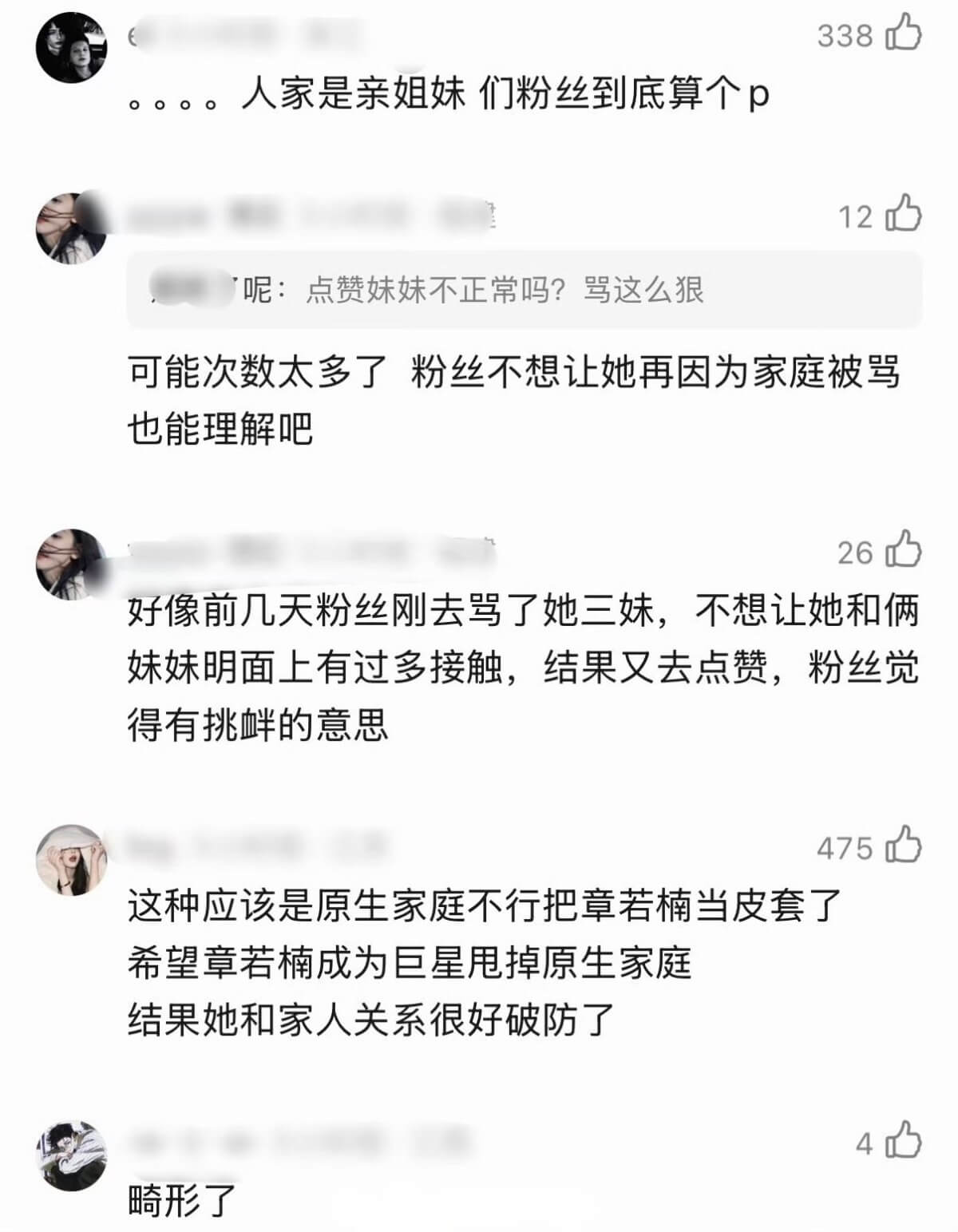 是噠,有網友發現,有不少自稱是章若楠粉絲的網友,居然因為她點讚妹妹的社交貼文而破防,認為公開點讚妹妹帖文,就是不要粉絲👇
