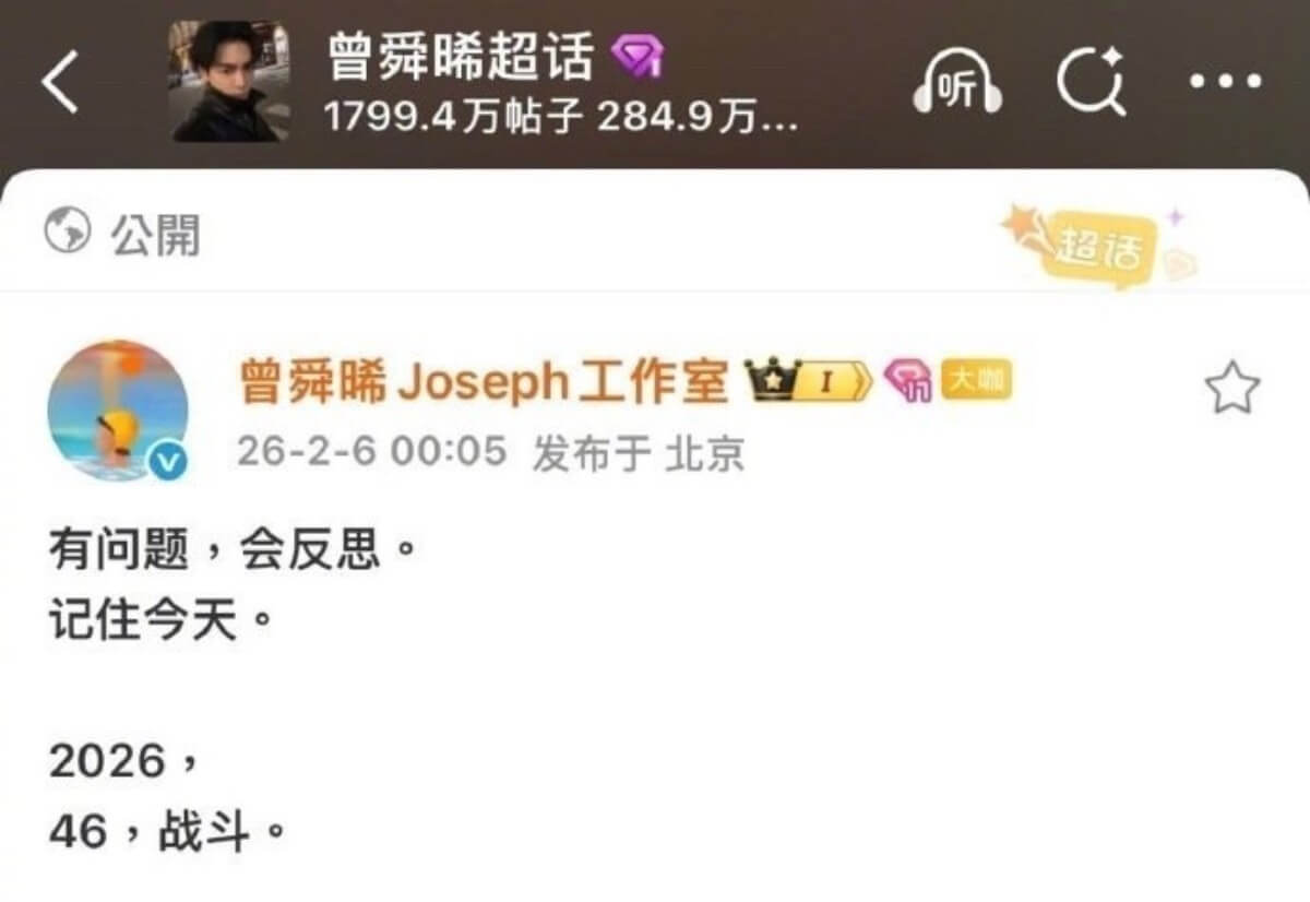 隨後曾舜晞工作室深夜發文,表示:「有問題,會反思。記住今天。」還喊話自己要戰鬥,但這則貼文隨後被刪除了!