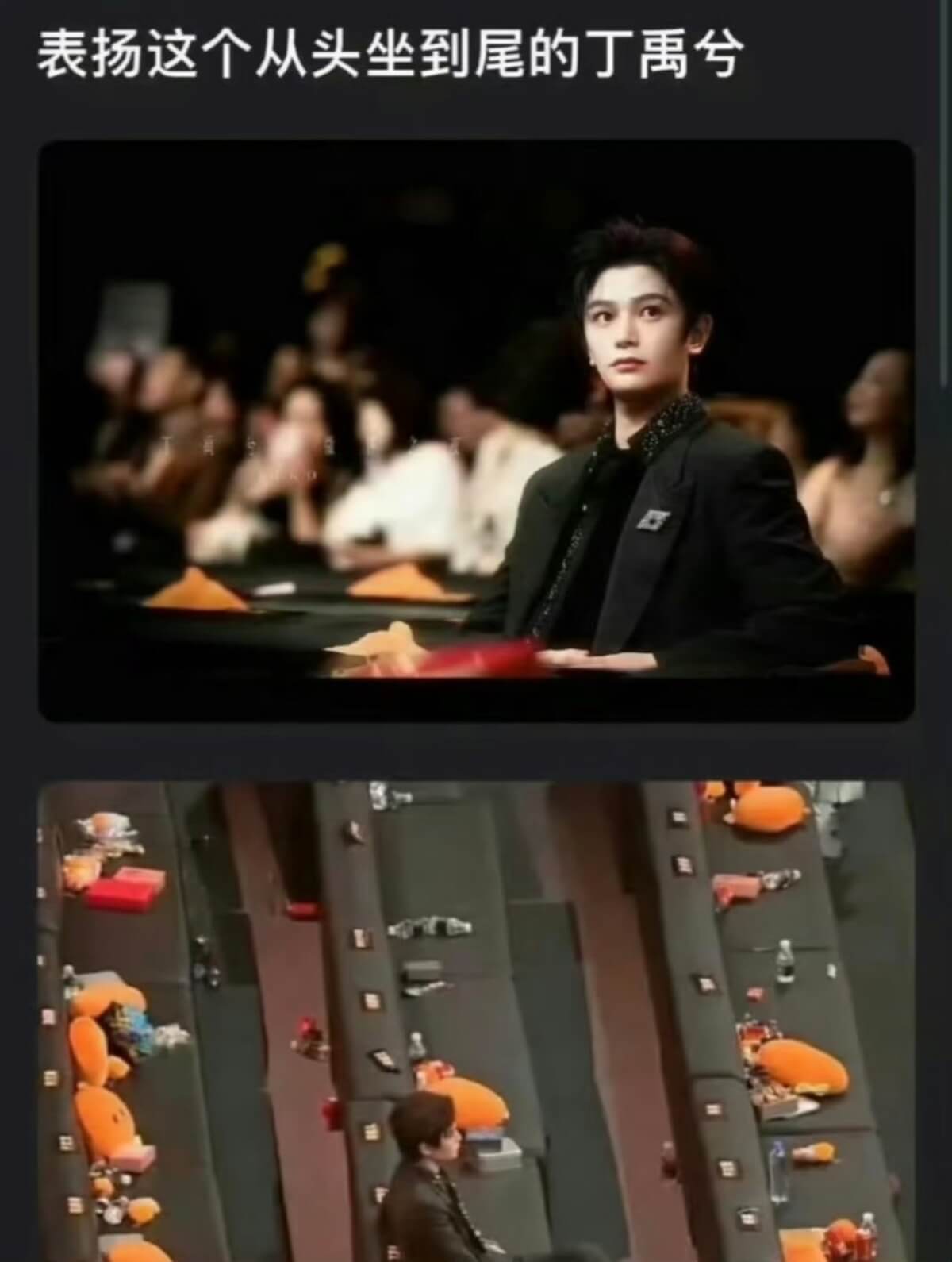 對比之下,丁禹兮卻因為座位而有另一種出圈,原因是他居然真的…坐到了最後👇