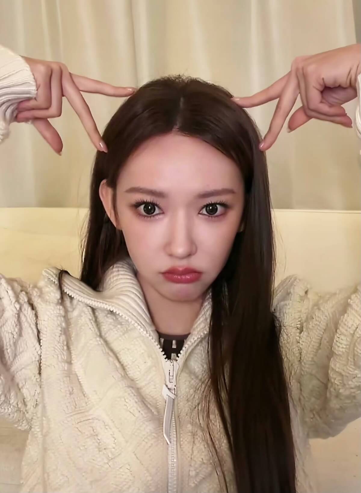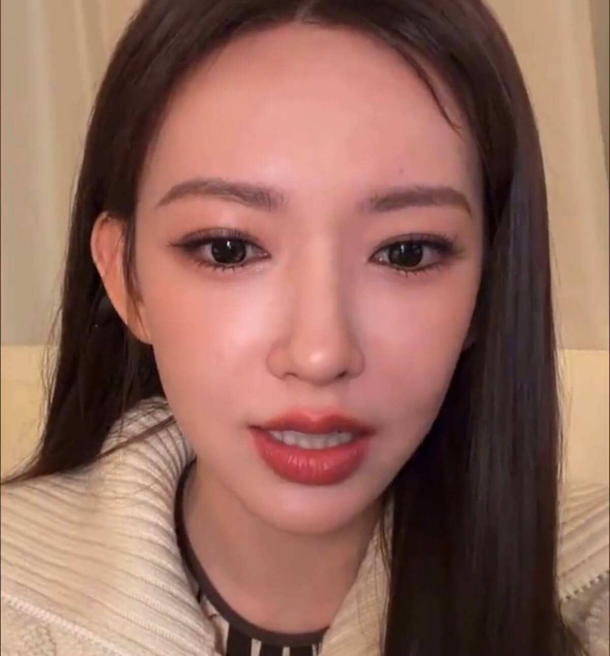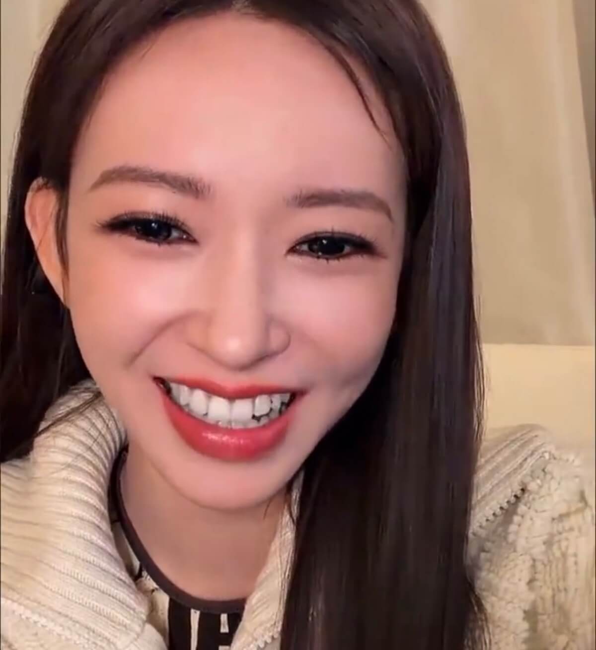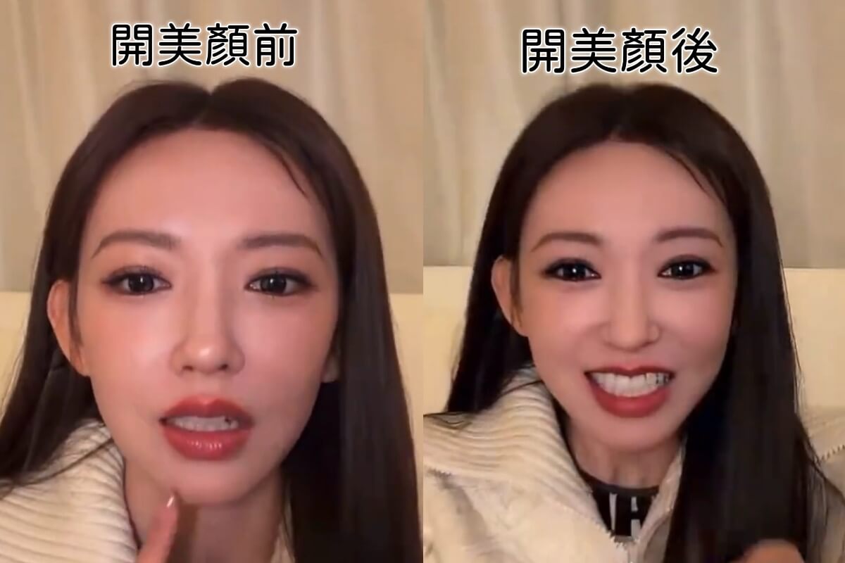 只不過聊著聊著,被粉絲慫恿開美顏濾鏡看看👇