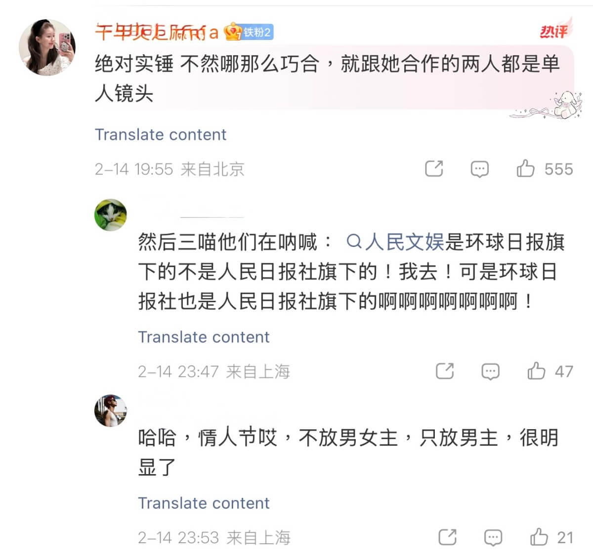 但有網友發現,官媒人民日報旗下的媒體號,已經刪除虞書欣相關發文,沒想到在最新的情人節影片中,再次見證官媒至今依舊封殺!