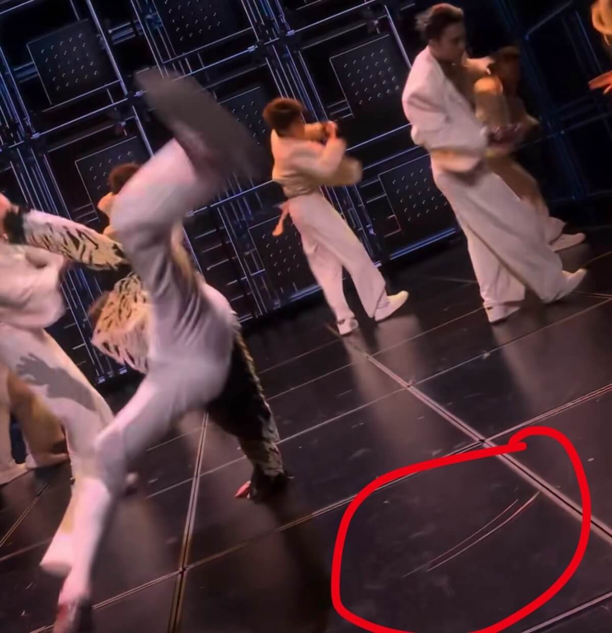到底怎麼一回事呢?有眼尖的網友發現,在王一博的這個超出圈的地板動作之後,地上居然直接現出刮痕!