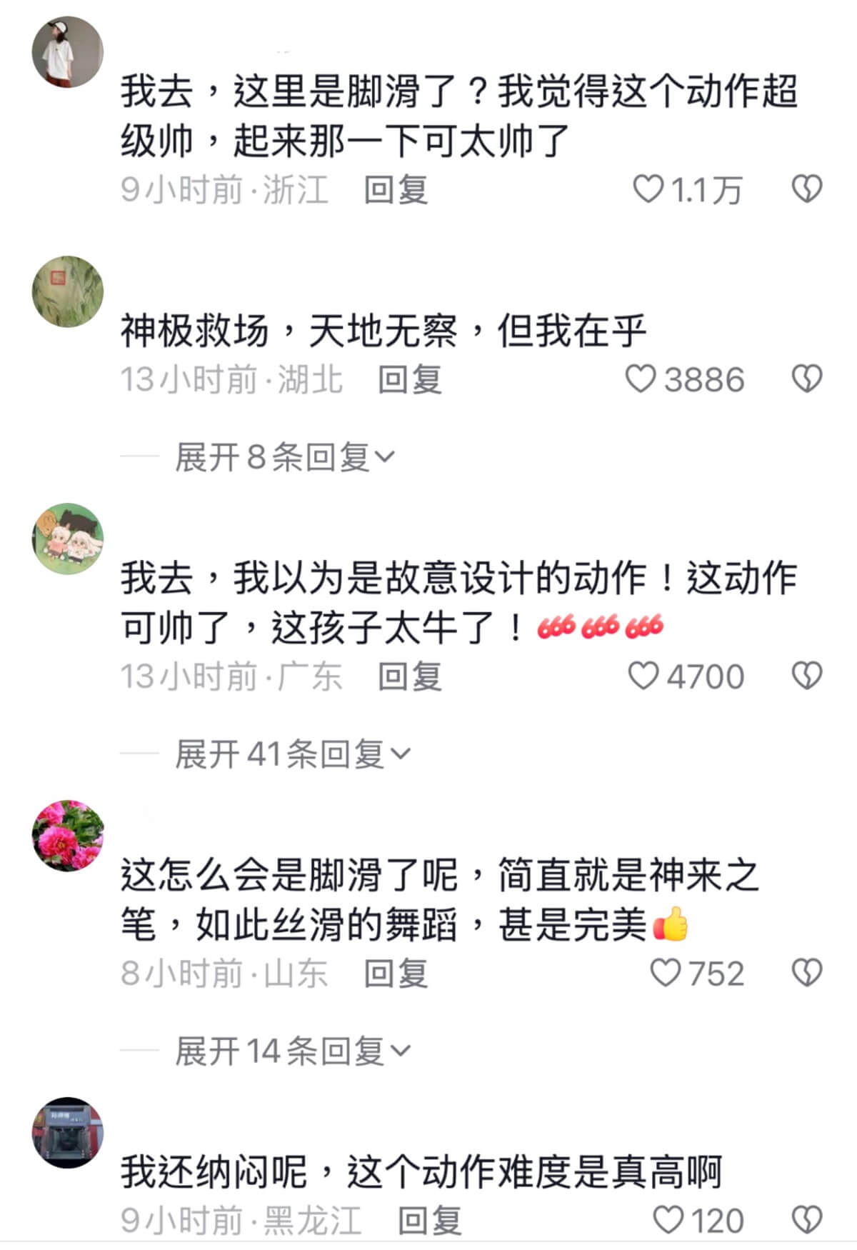 結果讓人更驚訝的是,在之後的訪問中,才知道原來這個地板動作,原來是王一博在腳滑的情況下,為了救場緊急做出的替補動作👇