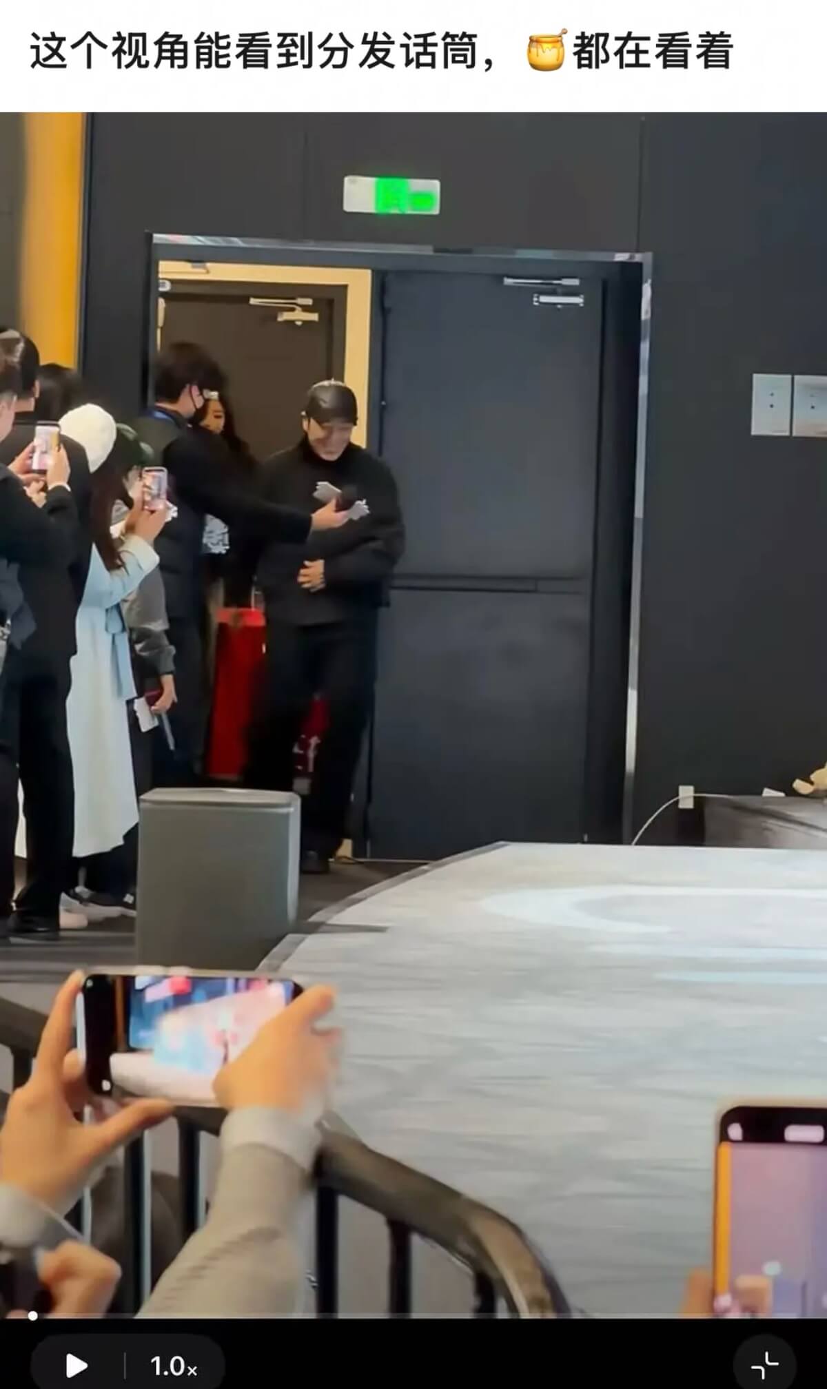 粉絲也闢謠表示,楊冪沒有留意到工作人員在台下遞麥克風!結果網友再扒出另一個角度,確實楊冪上台前就看見,在她之前的張藝謀、宋佳等都拿到了麥克風👇