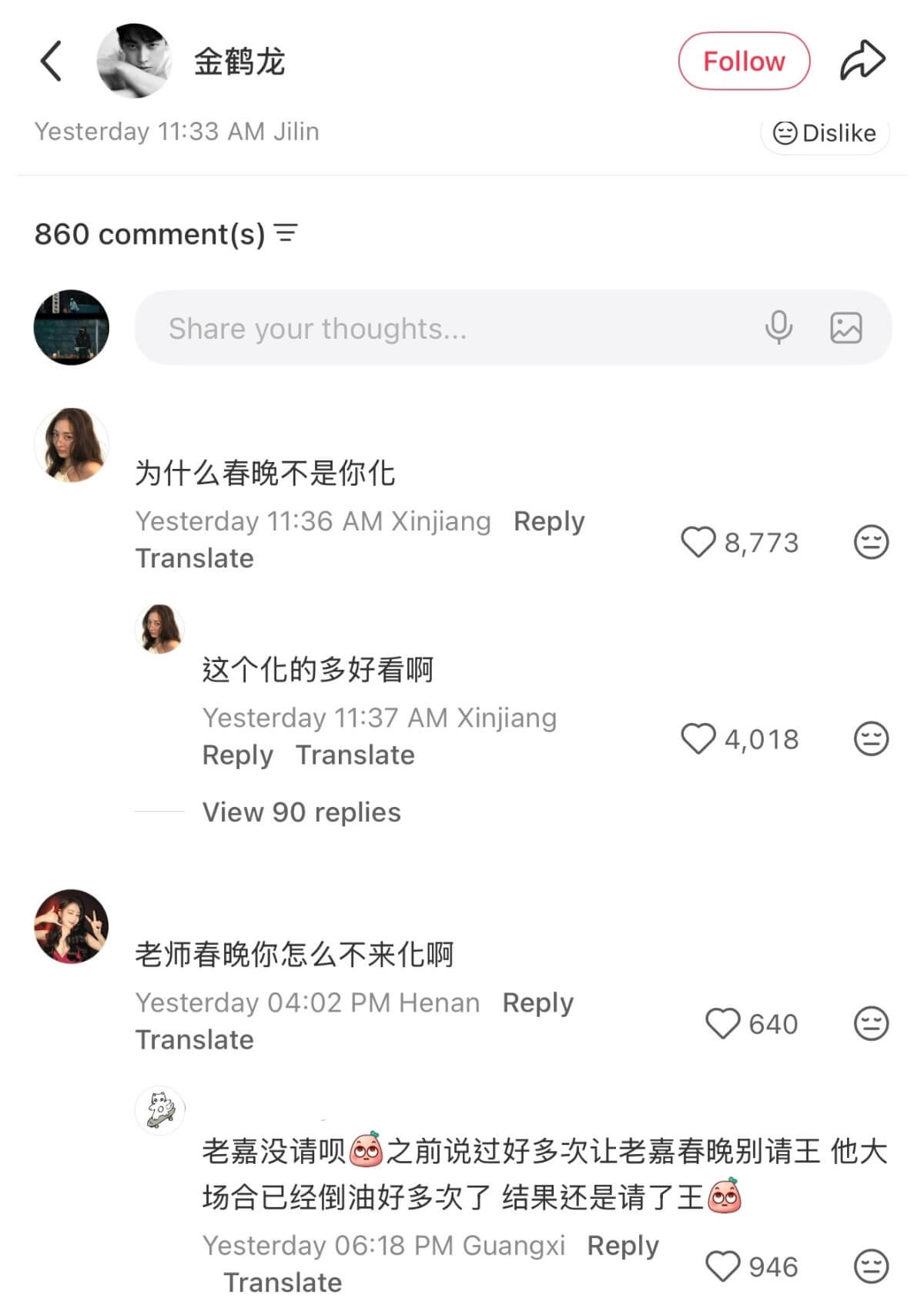 而負責新春寫真的化妝師金鶴龍,還模仿了春晚化妝師王亞飛的發文格式,認領了這一次的妝容👇