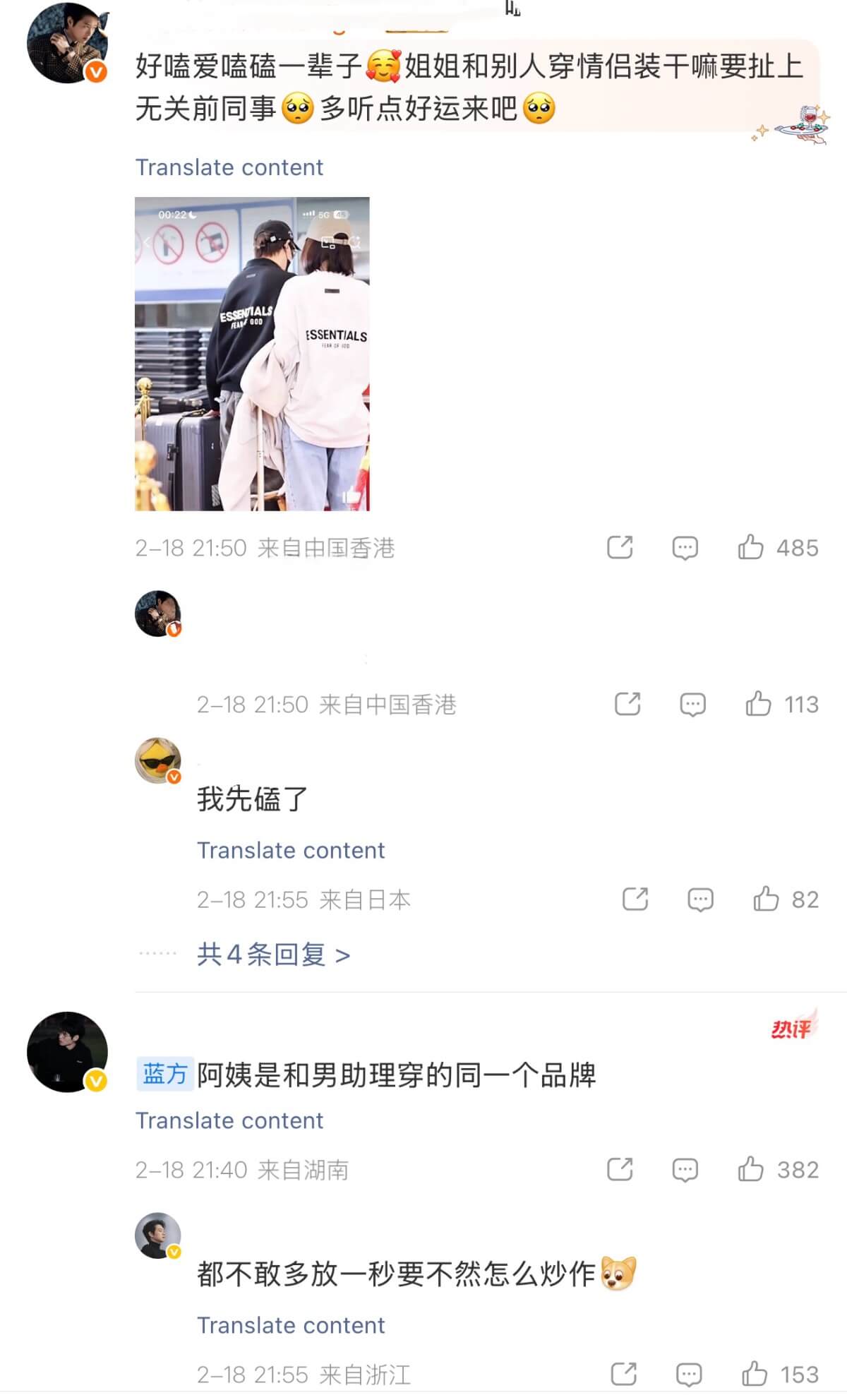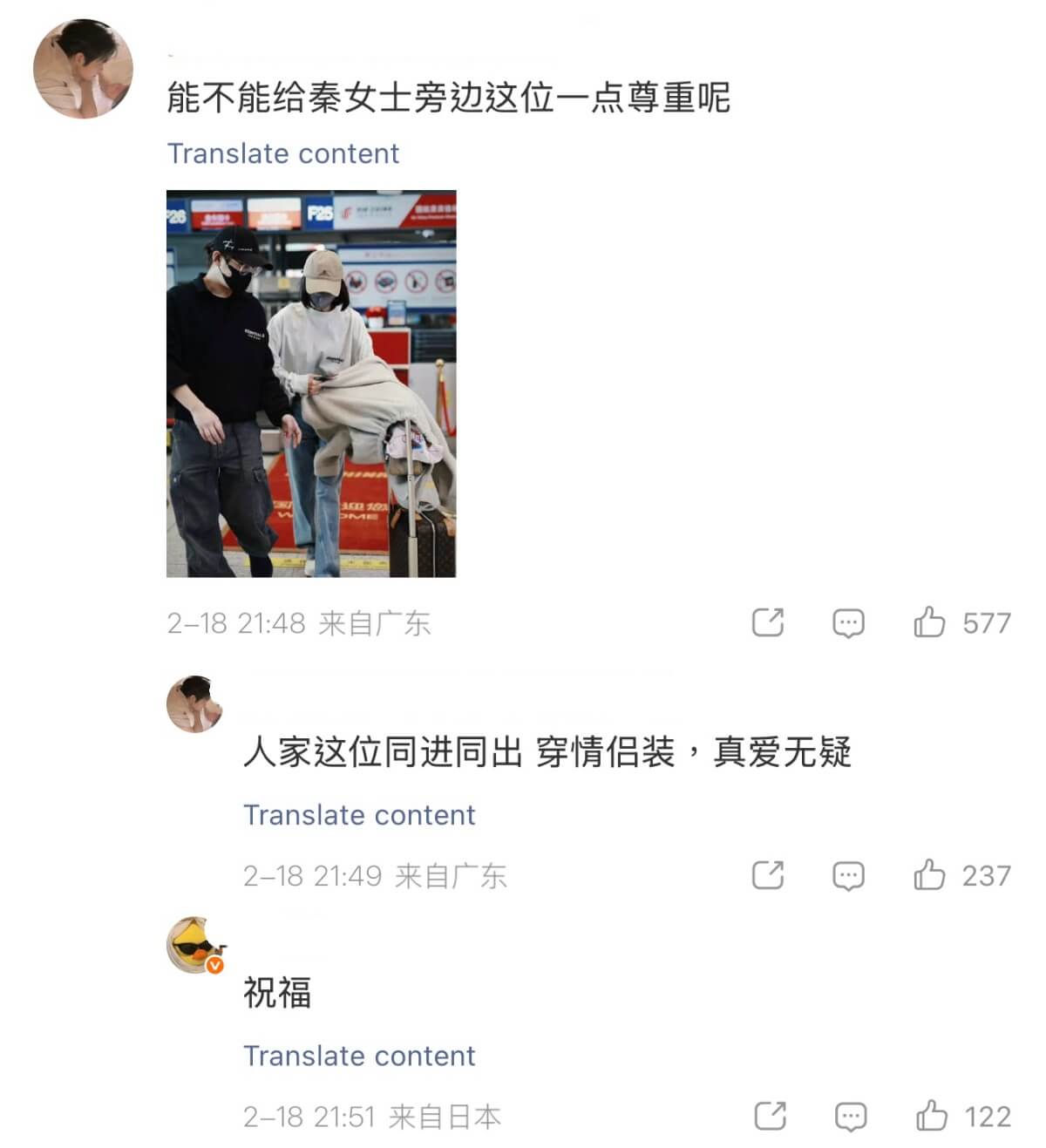 是達,有網友發帖,表示秦嵐最新的機場路透,穿的衣服是魏大勛同款👇