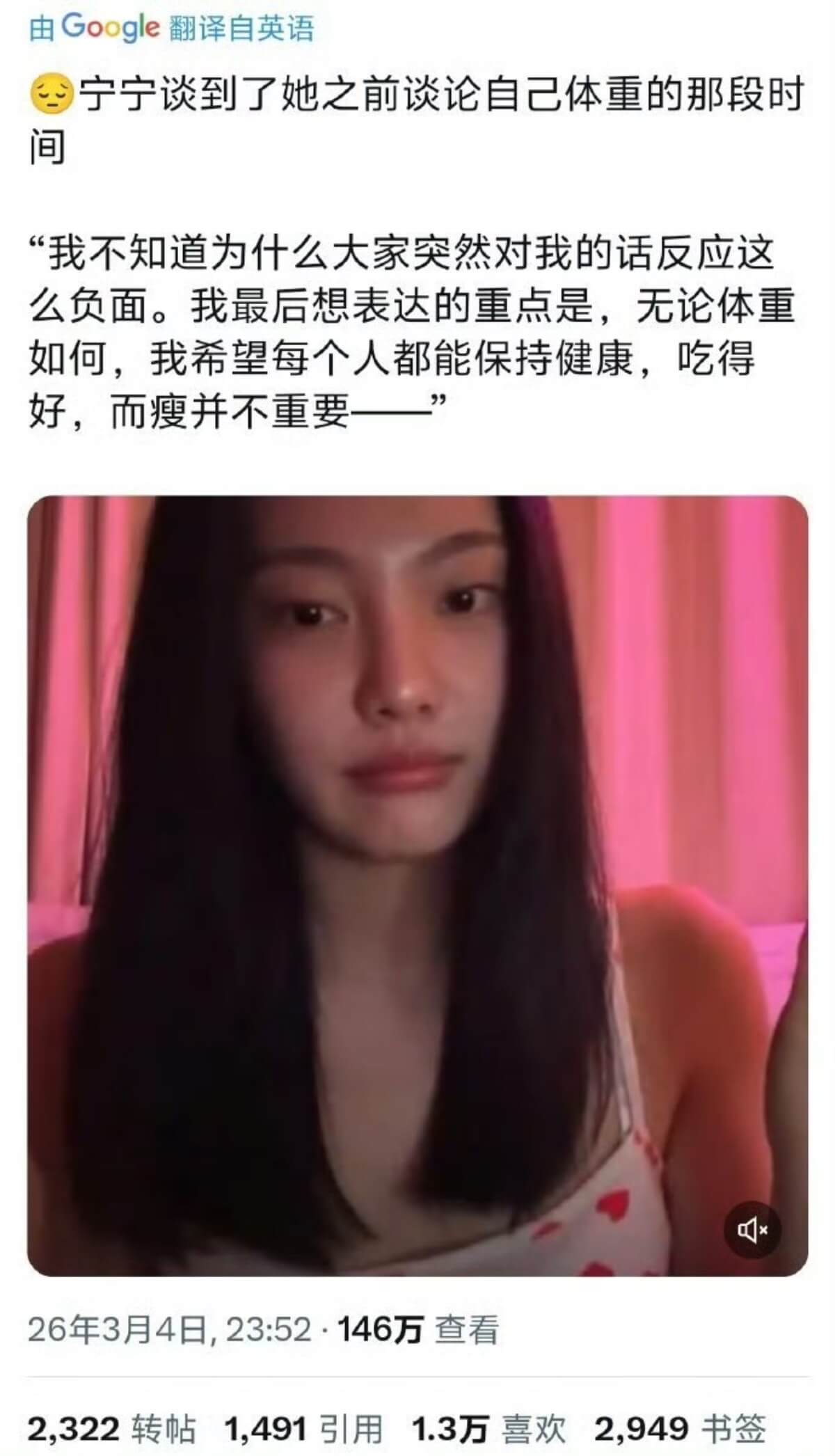 隨著討論聲量越來越高,寧寧再次開直播表明自己的立場,那就是體重不是重點,健康才是最重要的👇