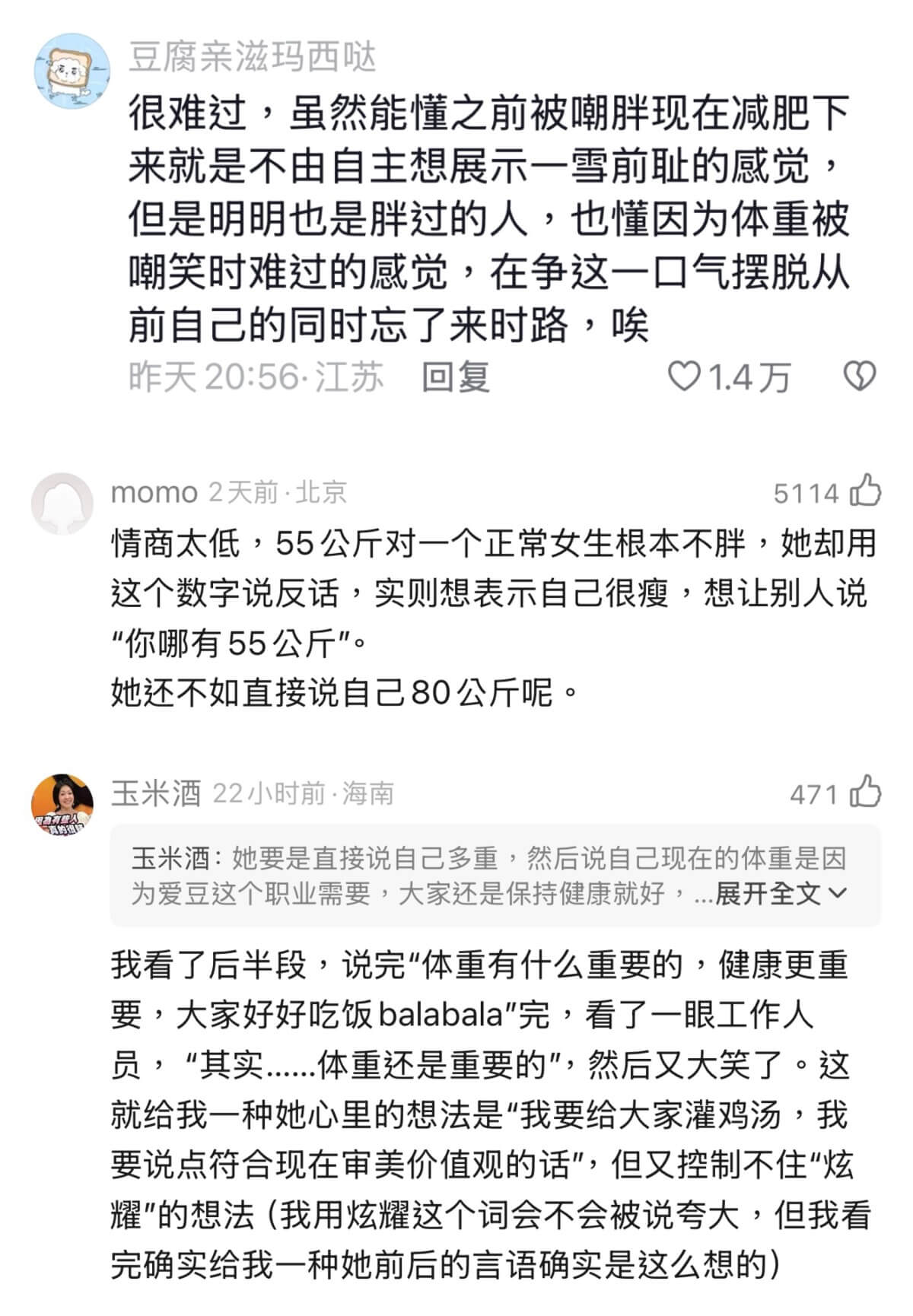 雖然但是,粉絲表示她說完體重之後,有重複強調健康才是最重要的👇