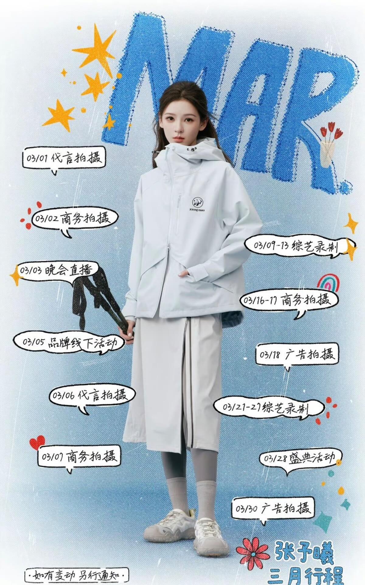 張予曦在2月底公開的3月行程圖上,早就標明有綜藝安排,畢雯珺3月原本是一直在組拍戲的。結果在3月6號下午,對接卻突然更新10、11號兩天新增綜藝錄製,坐實合體傳聞。