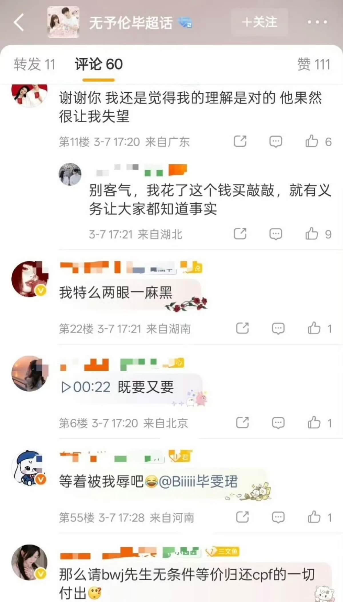 這段音頻被一些粉絲錄影分享到公開平台,許多「無予倫畢」CP粉表示心碎,覺得畢雯珺這樣說話就是在拆CP。