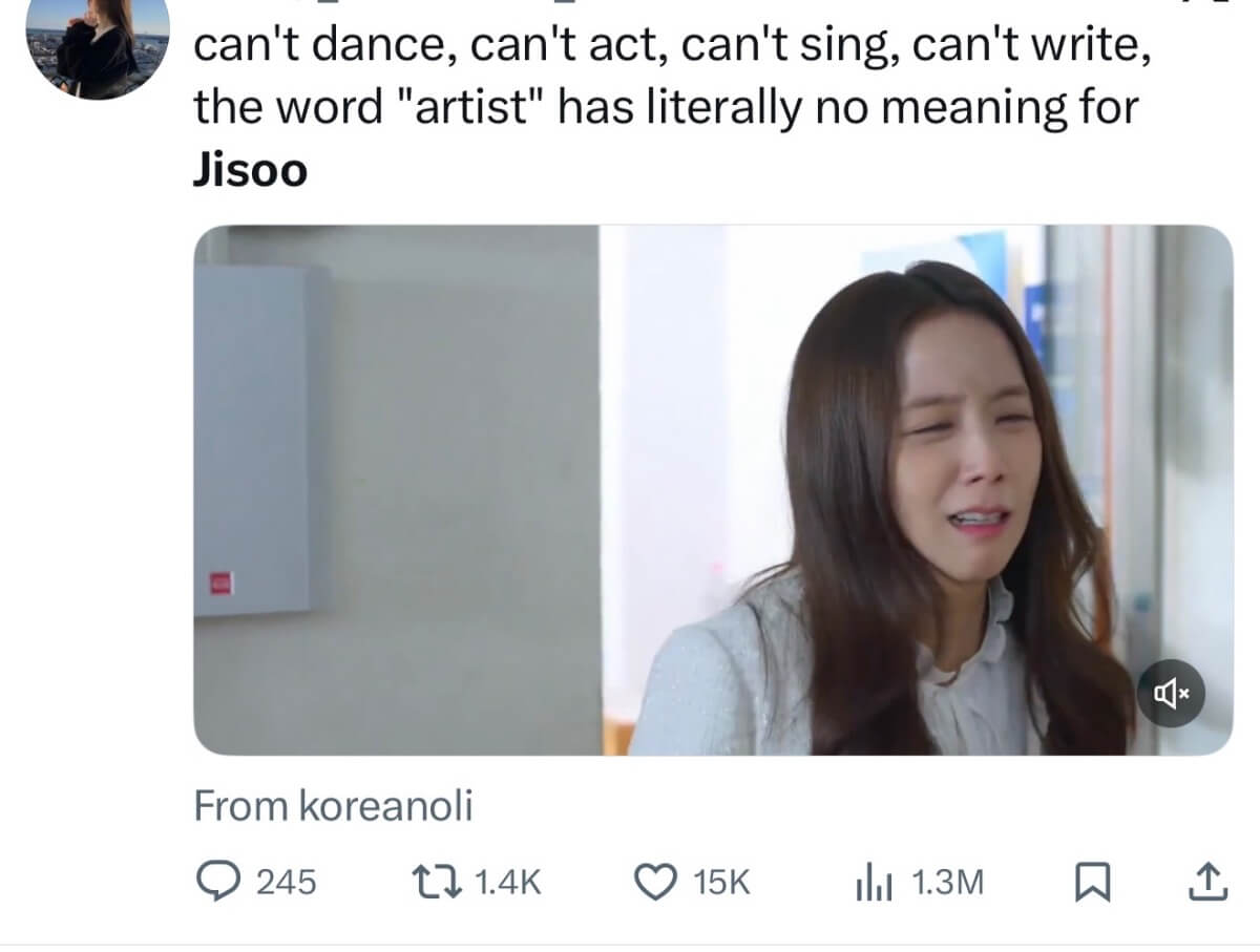 can't dance, can't act, can't sing, can't write, the word "artist" has literally no meaning for Jisoo pic.twitter.com/tNhsupTbTj