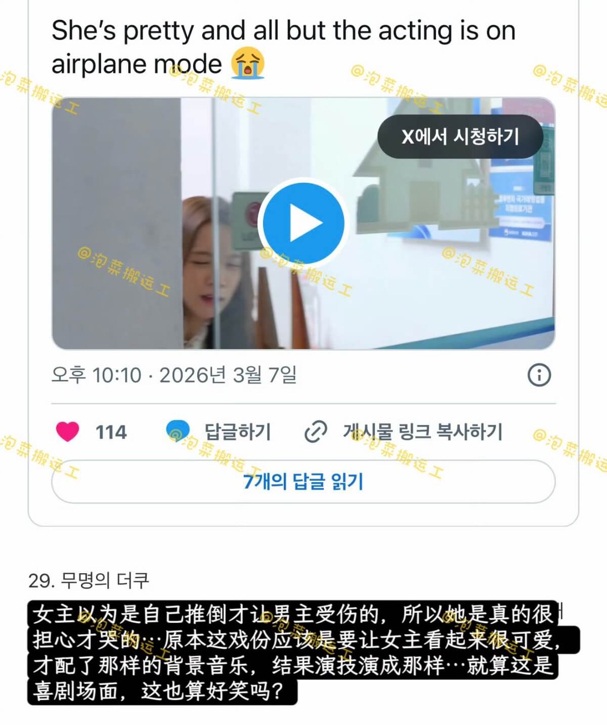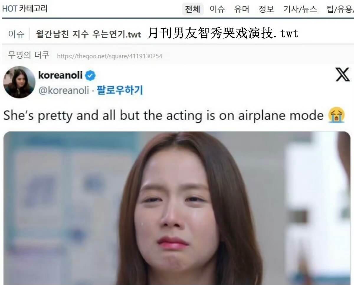 結果沒想到一場哭戲,直接讓Jisoo「演技遺憾」再次上熱帖,在韓網直接突破了1400樓,熱度之高讓人咋舌!甚至有網友毒舌吐槽,表示可以媲美車銀優的演技!