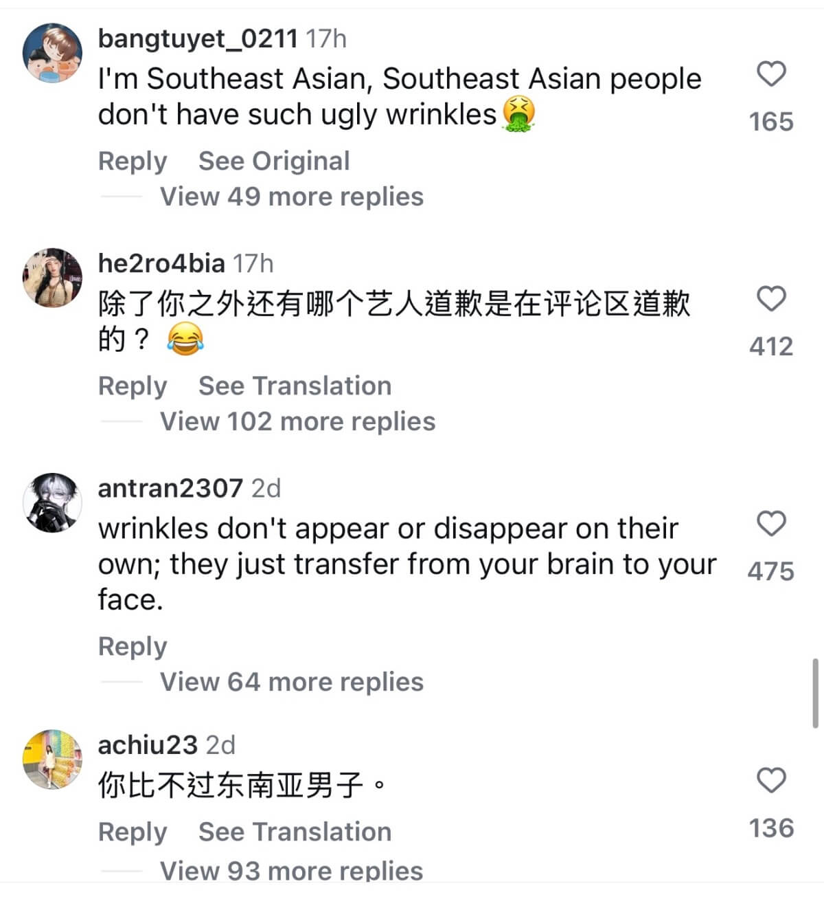 我是東南亞人,東南亞人沒有這麼醜的皺紋。