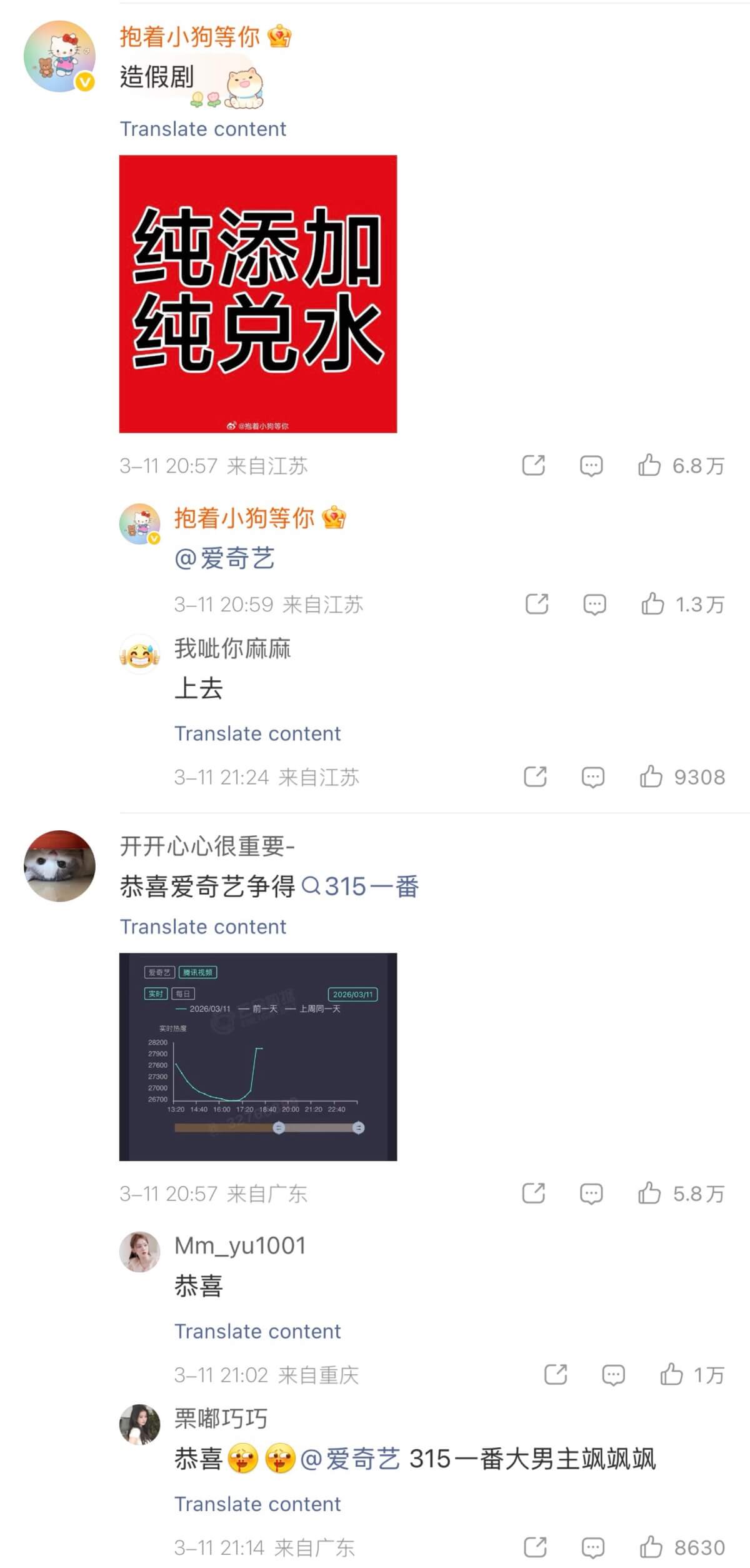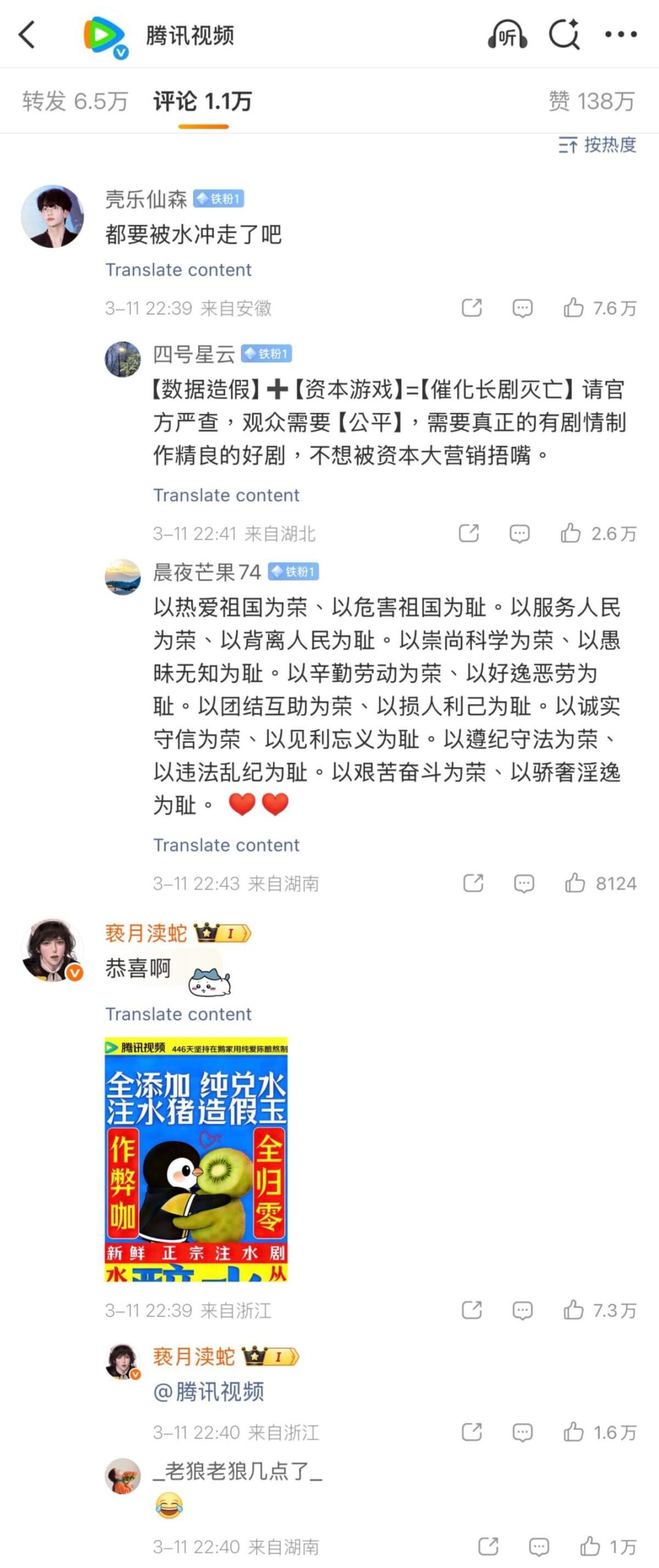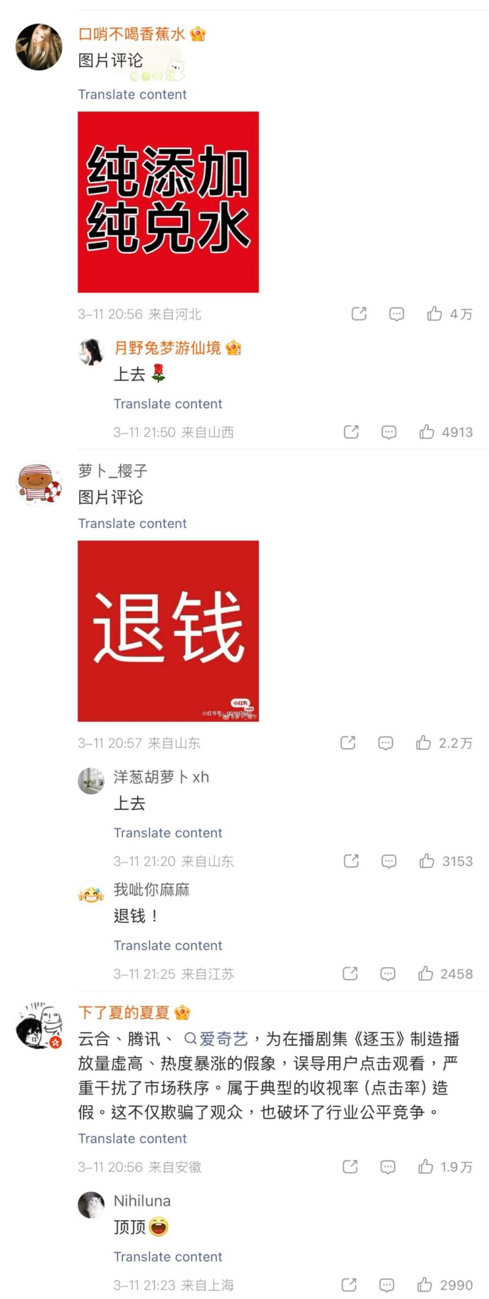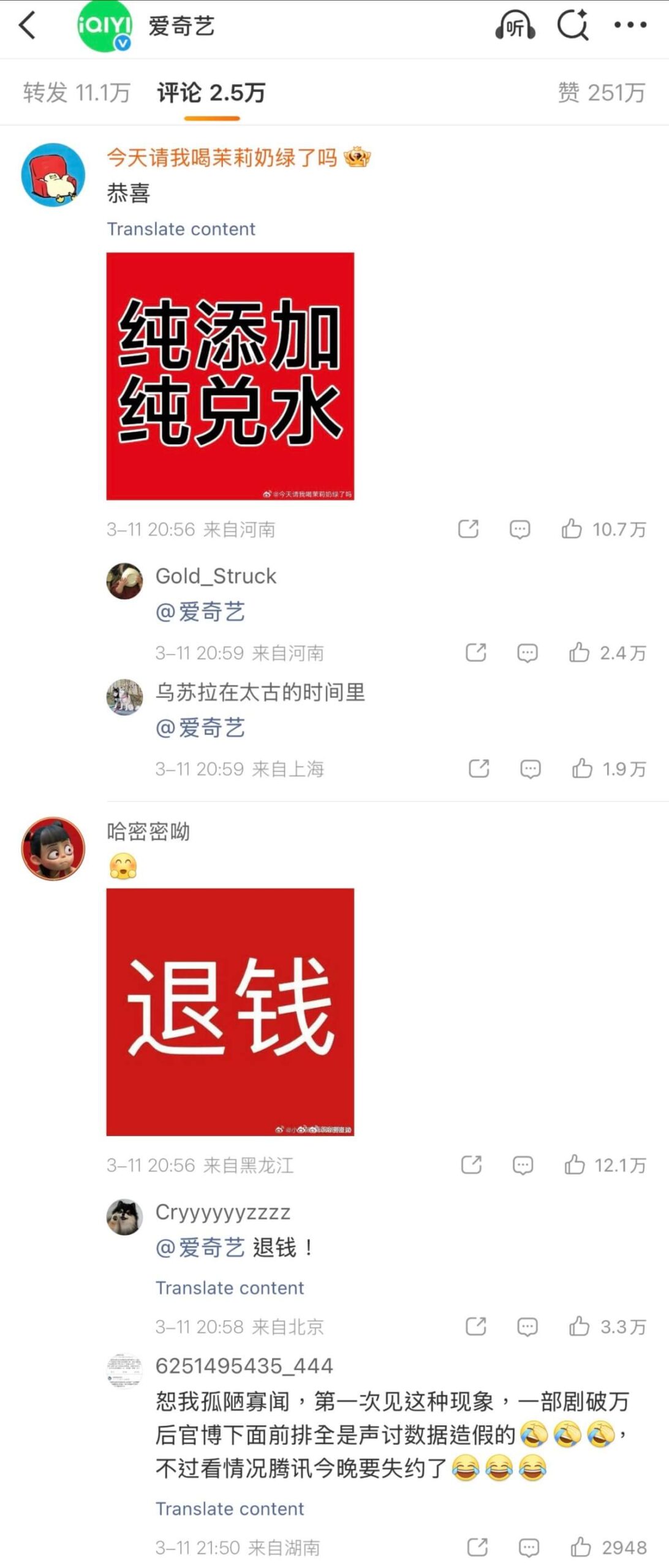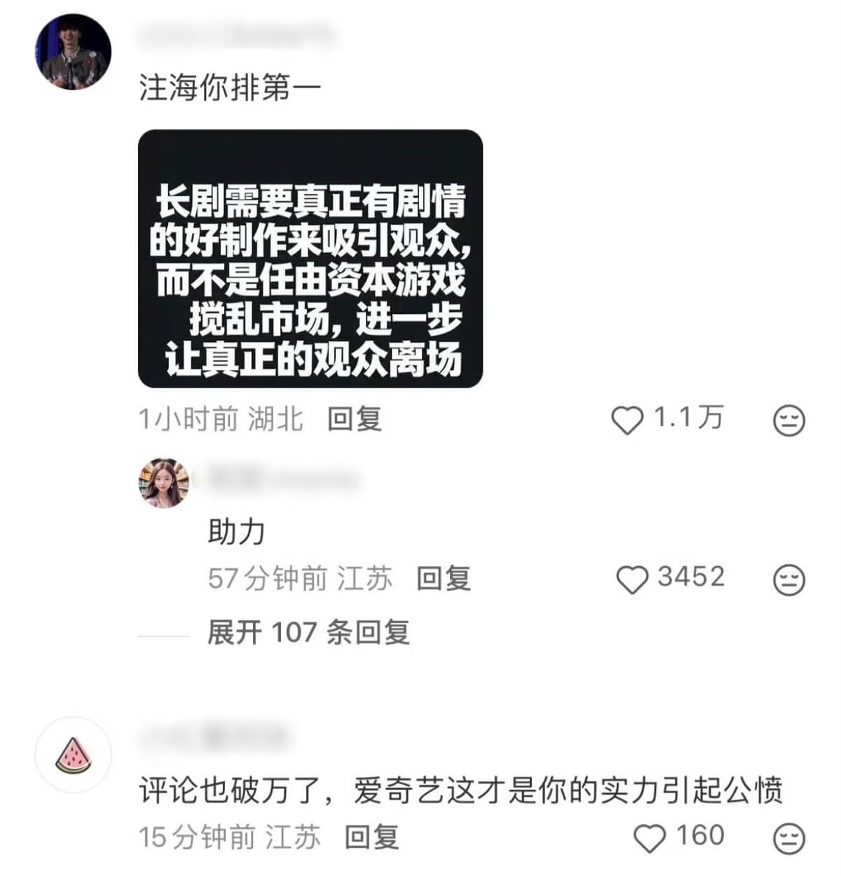 這裡科普一下,這是首部實現雙平臺同步破萬的中國劇,這一里程碑事件迅速引發全網對「熱度含金量」的激烈爭議!先來看看愛奇藝戰報下的評論區👇