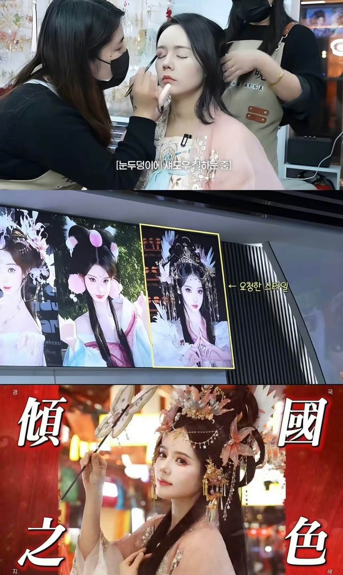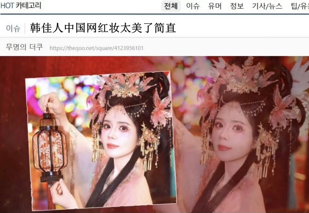 連韓佳人都來挑戰「中國網紅妝」了嗎?是噠,隨著越來越多韓國人前往中國上海旅遊,不少都會挑戰當地的網紅妝,之前的李美珠、朴明秀等人也紛紛嘗試👇