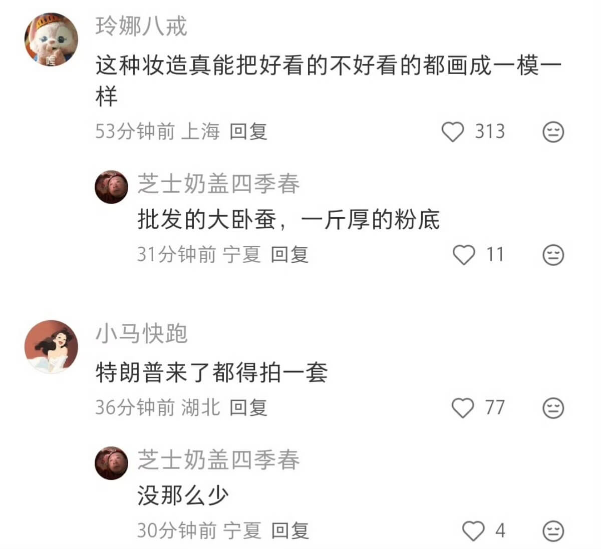 相反的,在中國網友眼中,像韓佳人這樣的大美女,根本不需要這類型的誇張妝容,中網友形容這種網紅妝,就是把丑的變好看,把好看的變醜👇