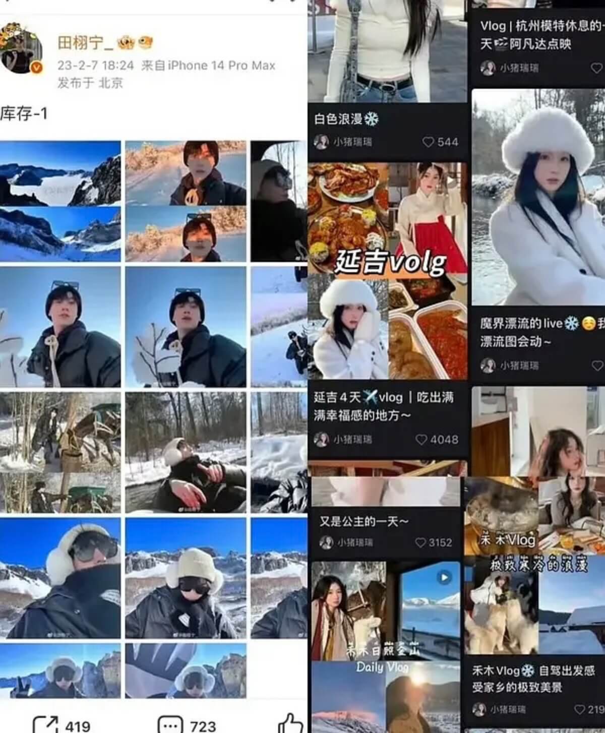 網友扒出不少細節對上了,包括她曬出的雪山照,和田栩寧之前發的對上了👇