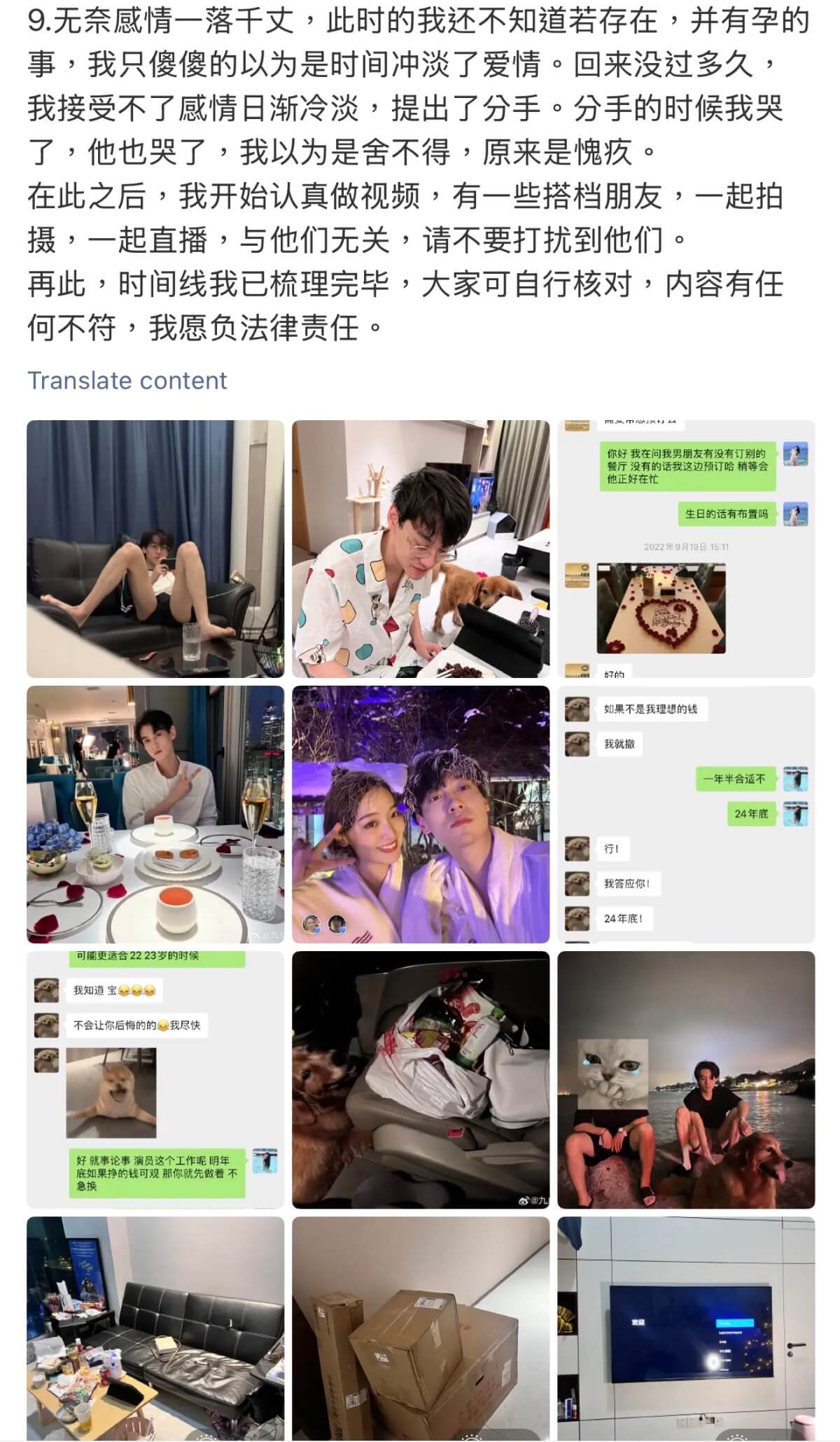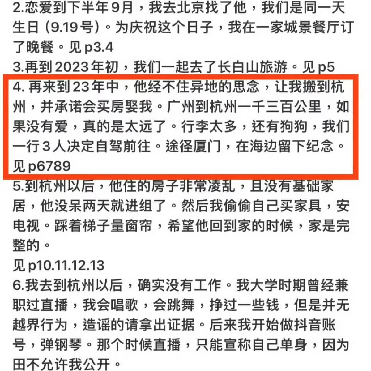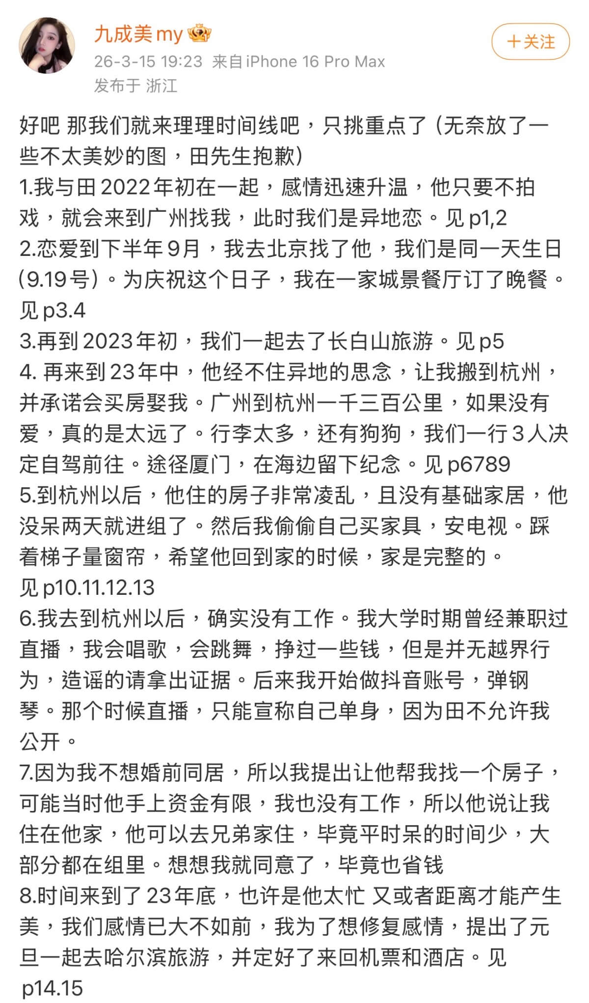 而九成美在15號晚上,發了她和田栩寧之間的時間線👇
