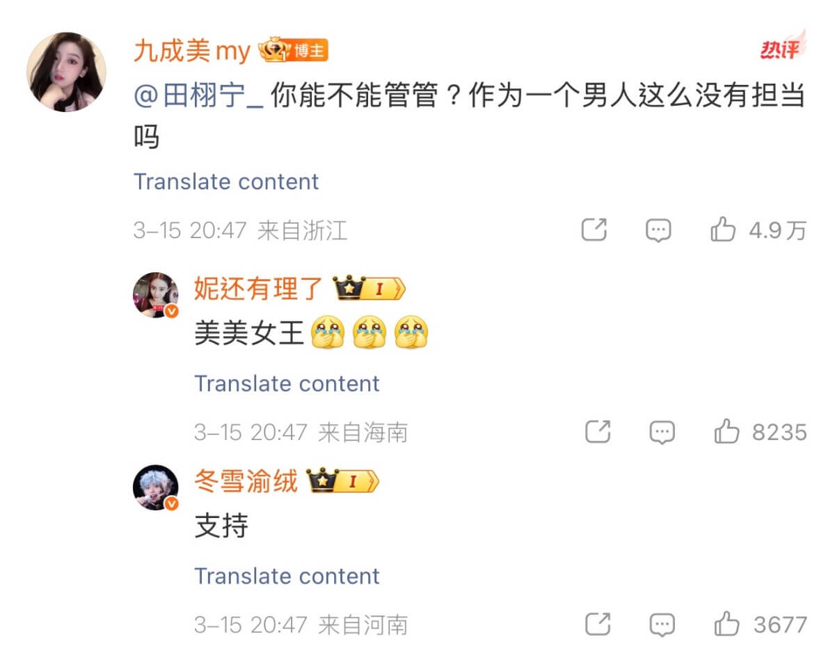 也在評論區喊話田栩寧,希望他作為一個有擔當的男人,管管他的粉絲👇