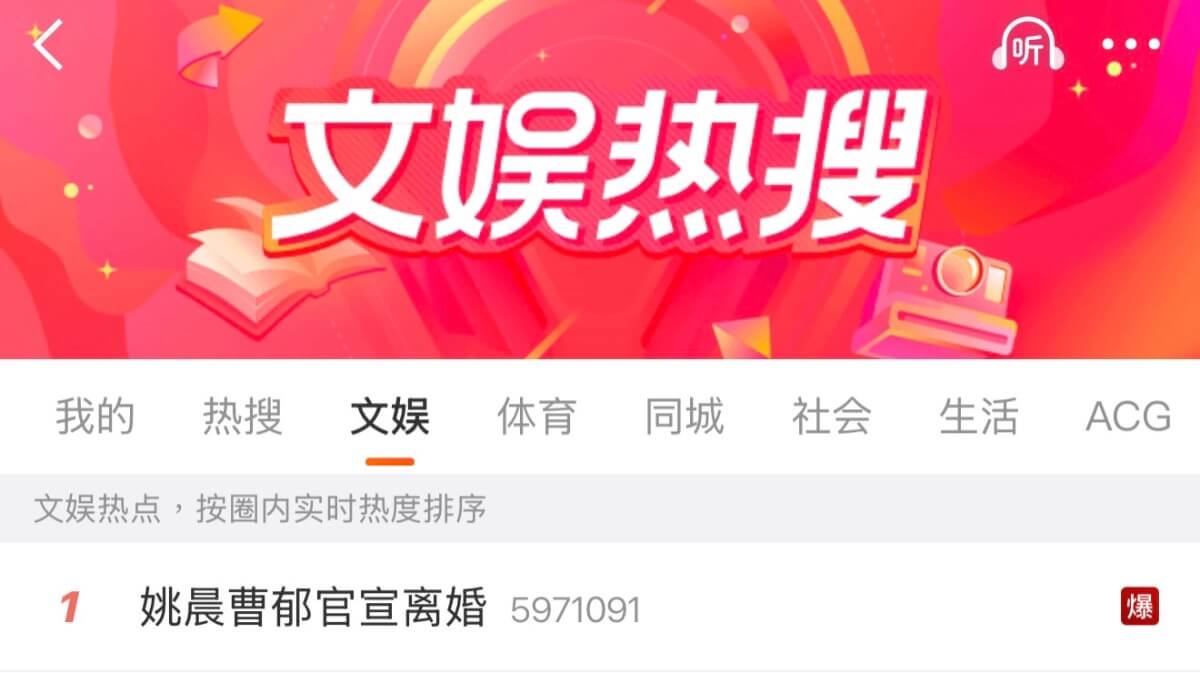 熱搜爆了!是噠,一向給人是幸福人妻的姚晨,在16號下午和丈夫曹鬱官宣離婚,直接爆了熱搜!