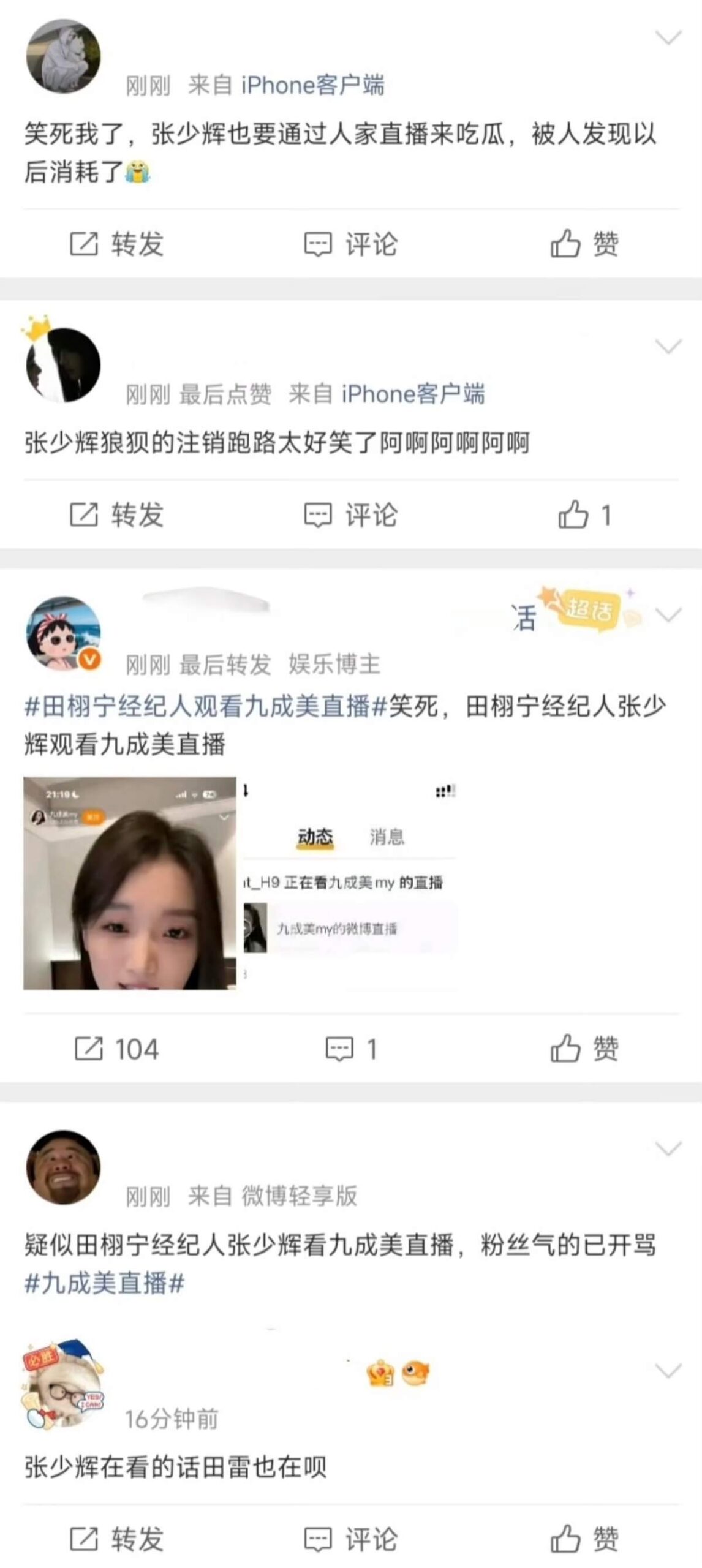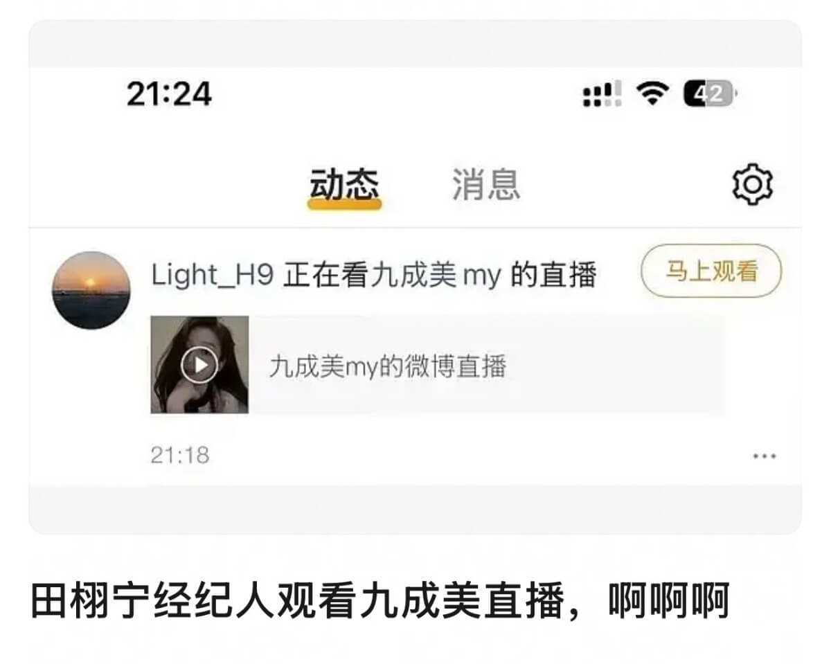 這場直播最抓馬的地方,不是九成美在爆料,而是被網友捉包,田栩寧的經紀人居然也在看直播👇