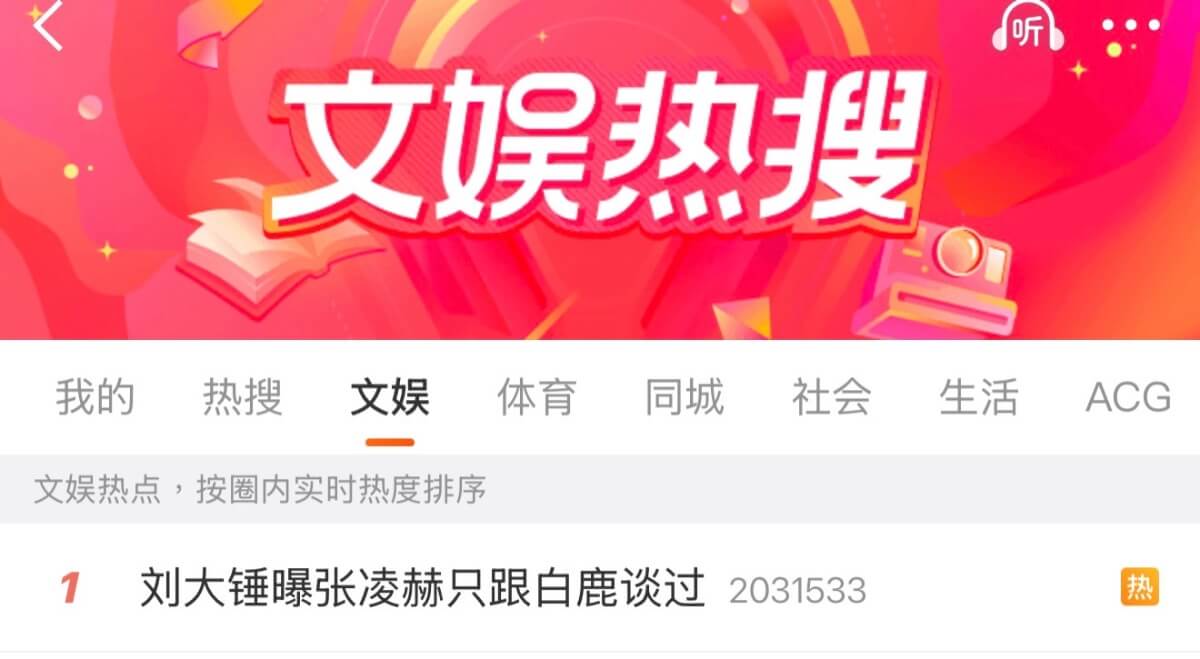來看看,這次熱搜第一的搜尋詞,是張凌赫只和白鹿談過👇