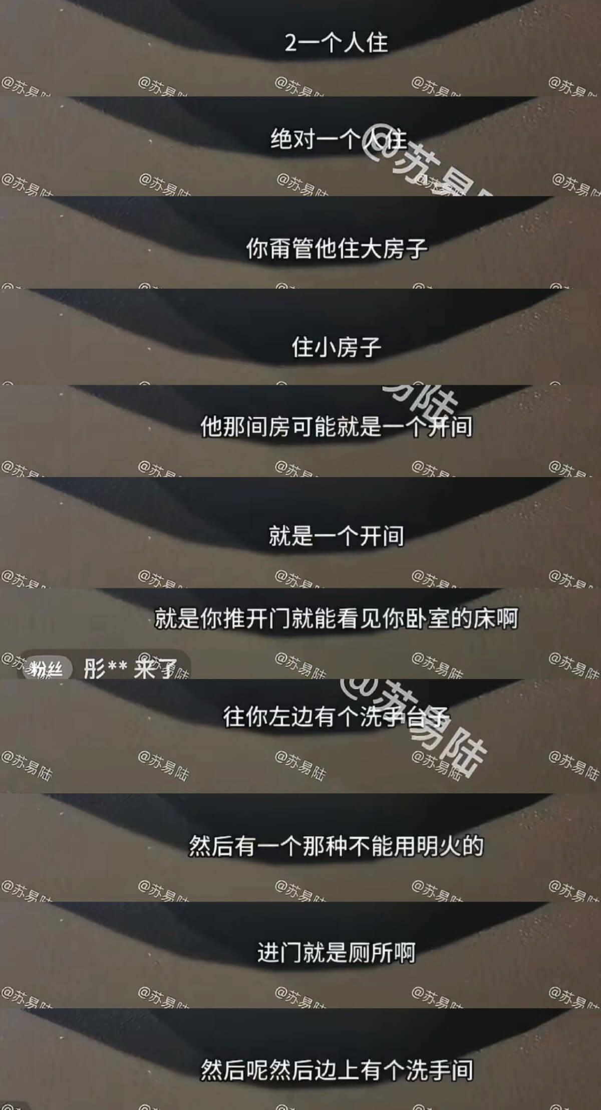 狗仔也介紹了當時肖戰住的地方,類似開放式套房,推開門就看見裡面是床,不能下廚的廚房,還有洗手間,這樣的環境下肯定也沒辦法戀愛,因為進出家門,對門的電子眼都可以拍得到,強調肖戰絕對一個人住!