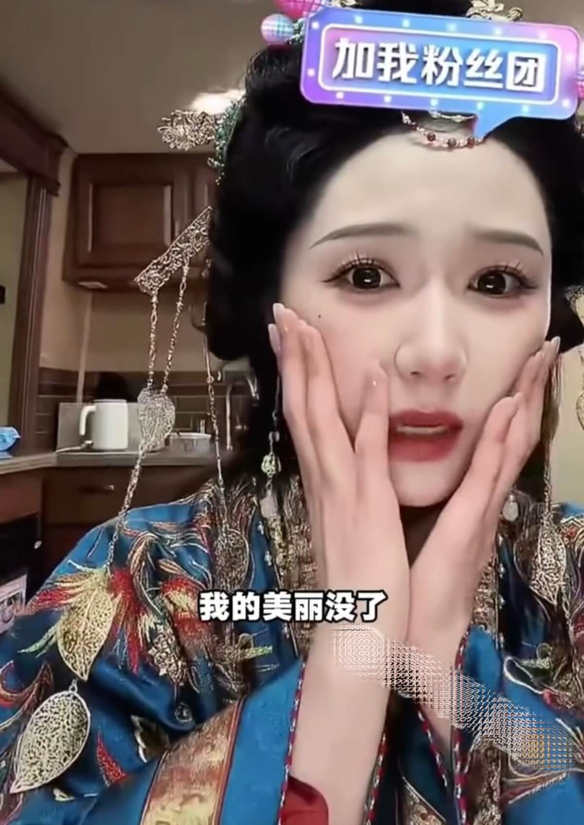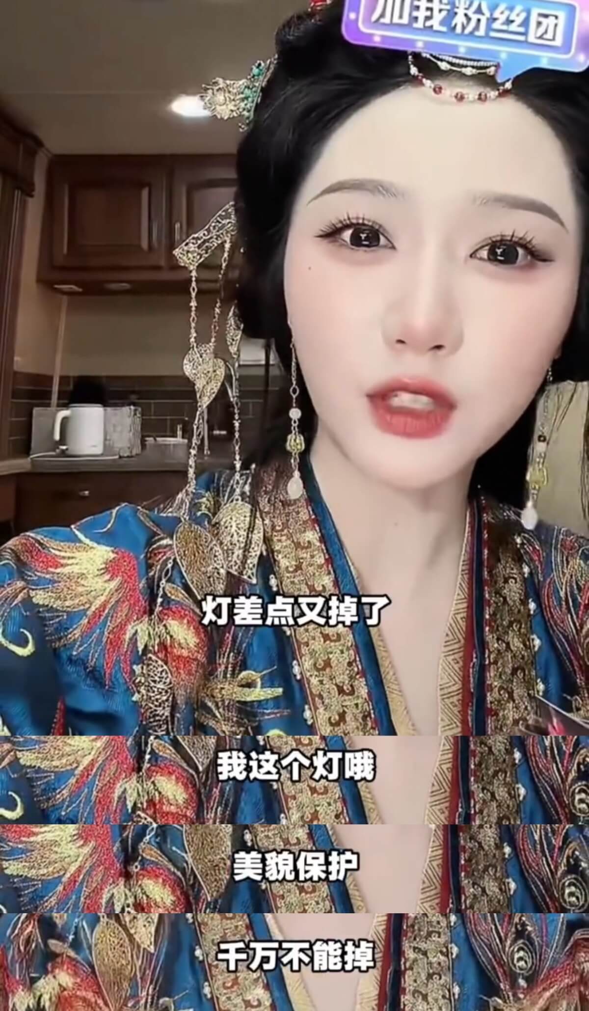 隨後她繼續直播,但對補光燈小心翼翼,並強調:「燈千萬別再掉了,美貌守護住啊!」
