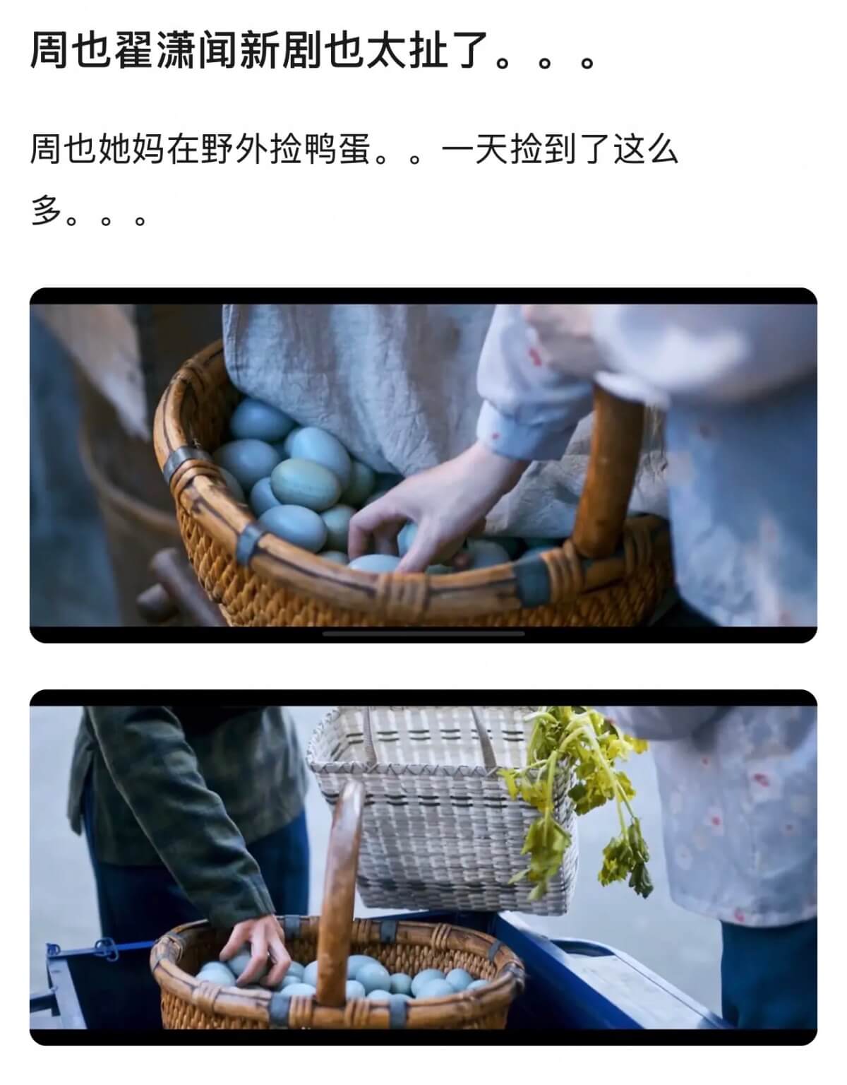 結果沒想到才開播不久,就因為賣鴨蛋劇情被網友們炮轟:「太扯了!」是噠,先來看看,周也媽媽在野外撿鴨蛋,一天內就撿到了這麼多👇