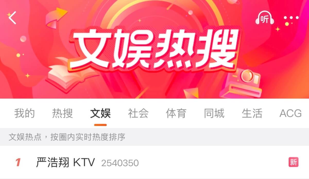 好多熱搜第一啊!是噠,一名網友公開了一段疑似在KTV內拍攝的影片,並帶大名表示:「終於可以不再捂了嚴浩翔」,「嚴浩翔 KTV」直接上了熱搜第一!