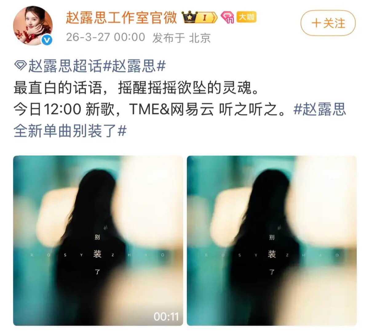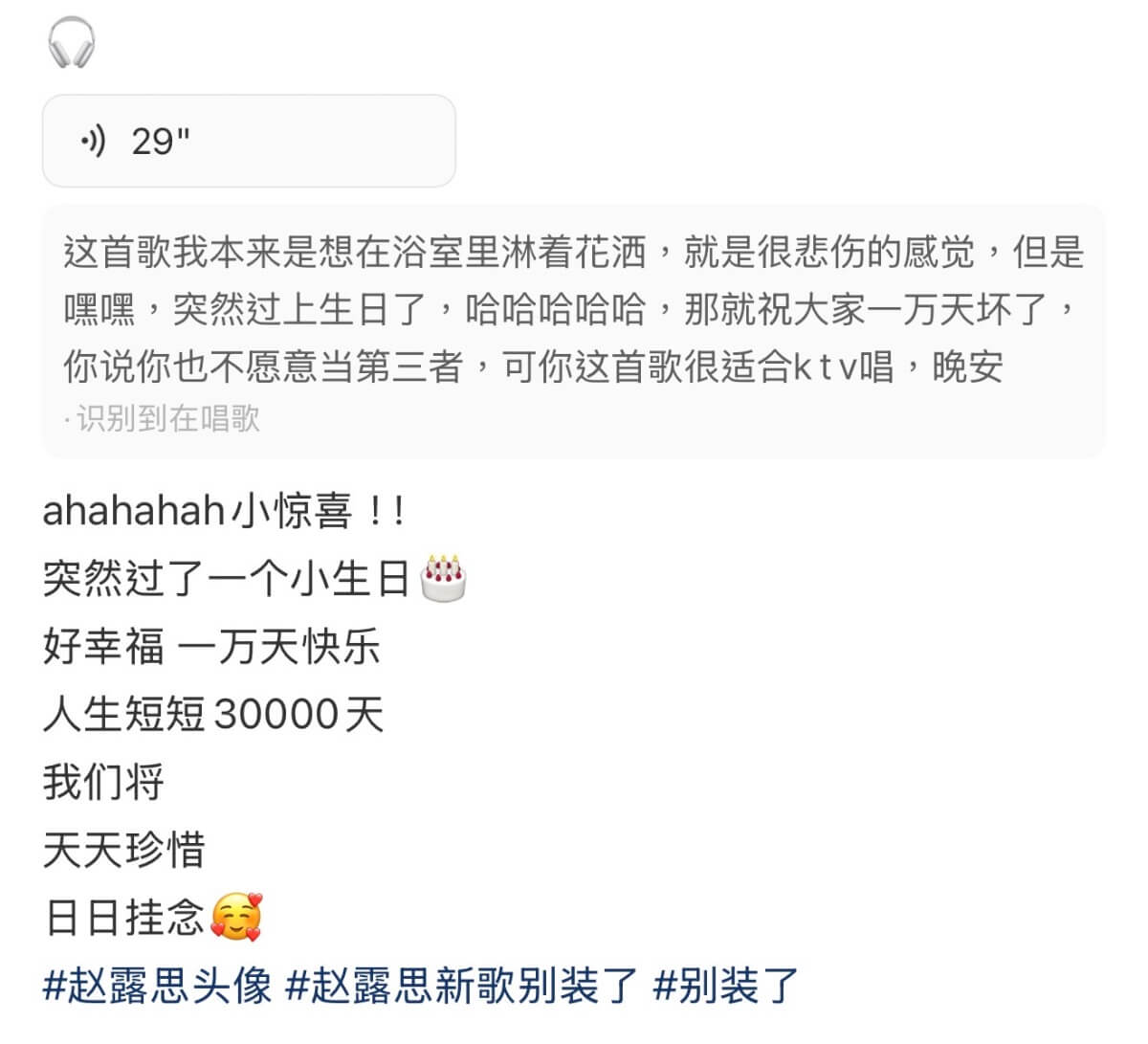 結果原來這天不但慶祝出生一萬天,還順帶發了新歌!趙露思也發文慶生👇