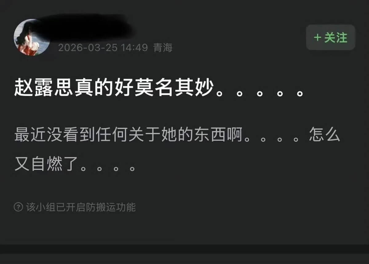 趙露思發文之後,引起了不少爭議,不少網友發帖吐槽,認為她是因為沒被受邀出席活動而破防,內核情緒不穩定👇